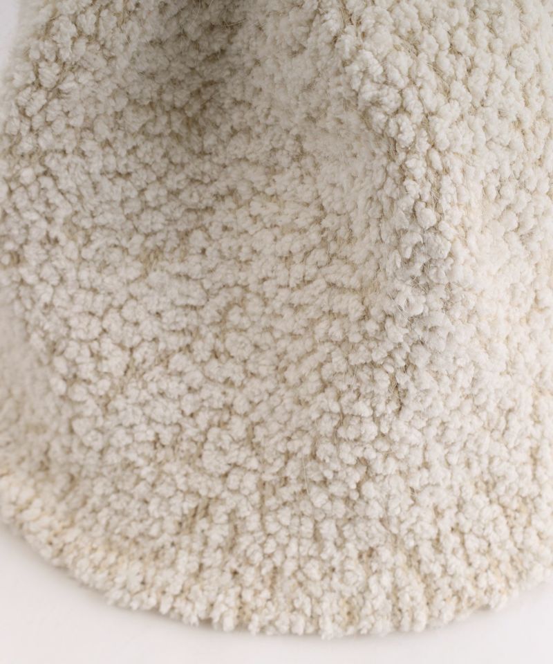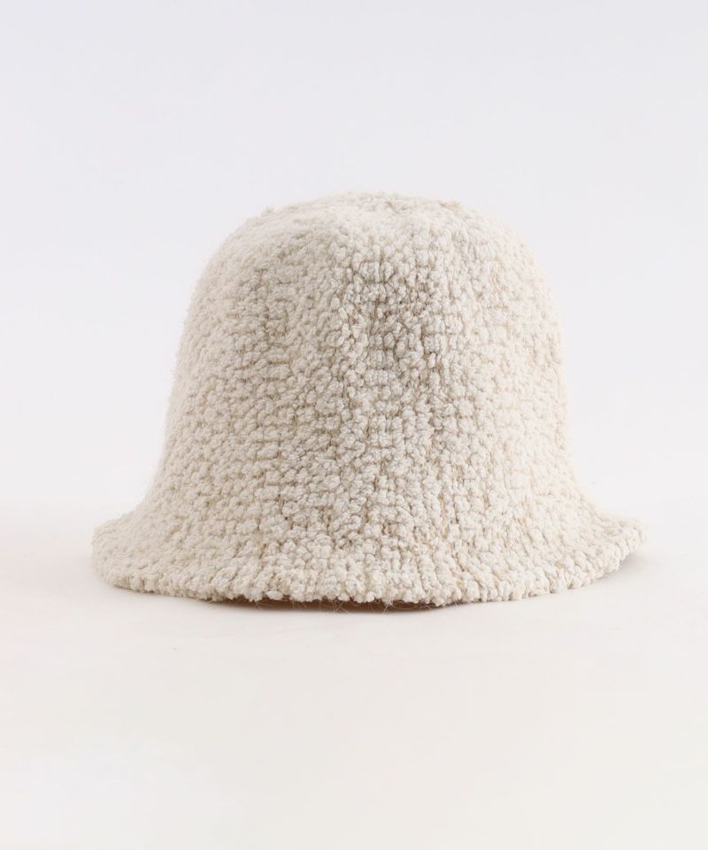 トレンド感のあるチューリップハット。切り返しを入れることで単調にならず、綺麗なシルエットを形成しています。季節感のあるボア生地が可愛いです。