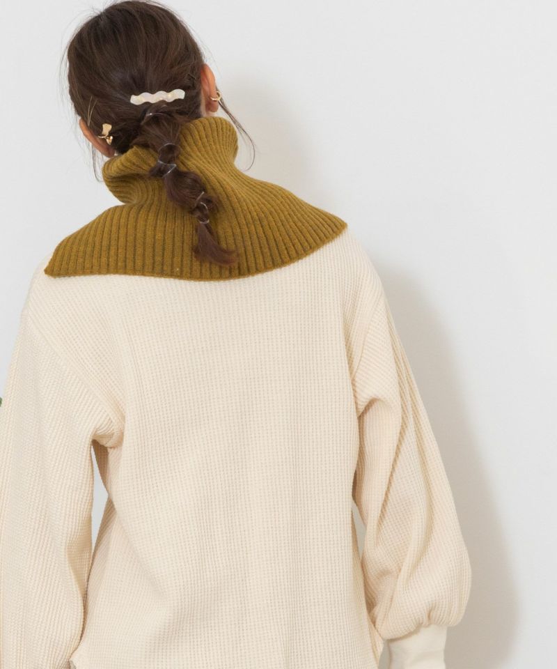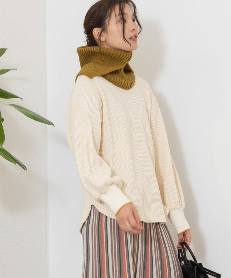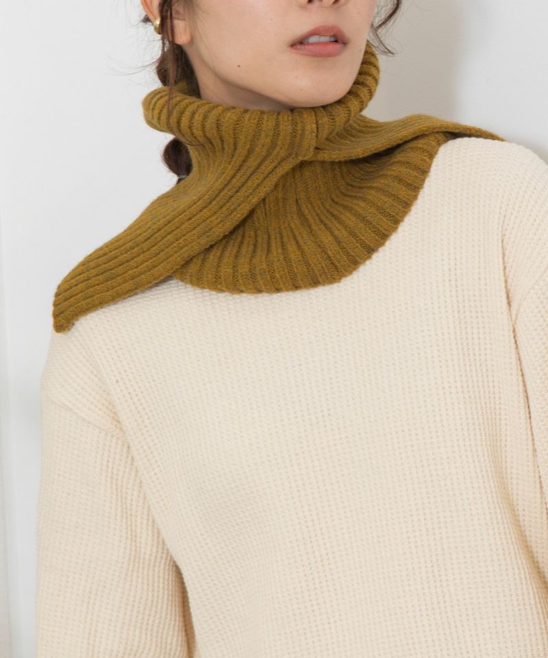 身に付けるだけでマンネリ化しがちなコーディネートを一新してくれるネックウォーマー。片側にスリットが入っていて、つける角度によって印象や着こなしが広がるアイテムです。上下はどちらでも着用できます。