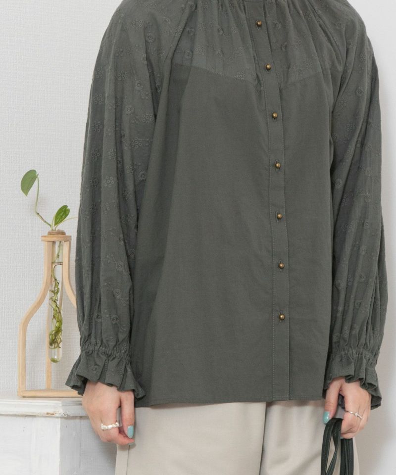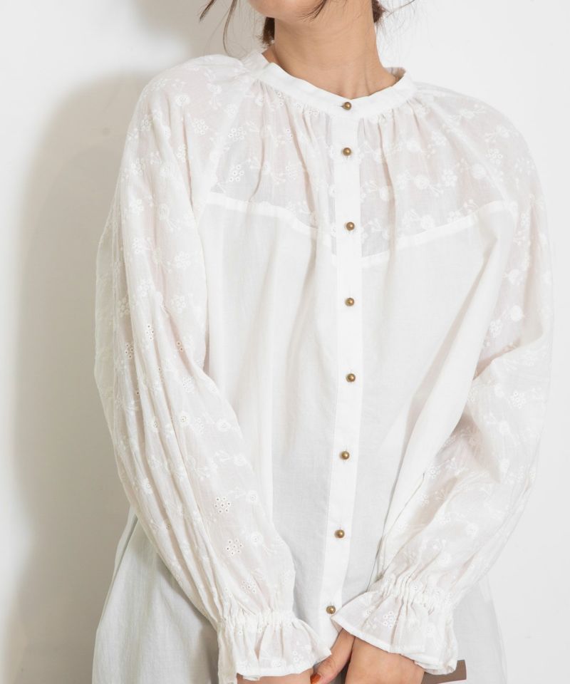 【SPECIAL PRICE】エンブロイダリーギャザー袖ブラウス