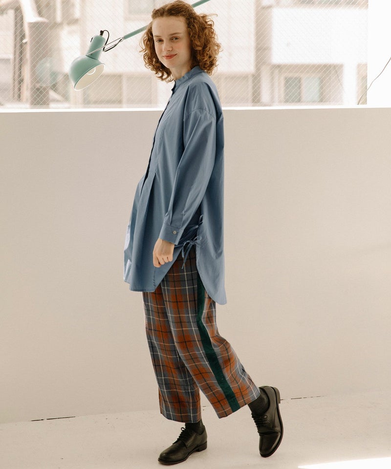・コットンを甘撚りにして、微起毛加工を施したオリジナルのタータンチェック生地を使用。温かみがあり、柔らかな履き心地のパンツです。