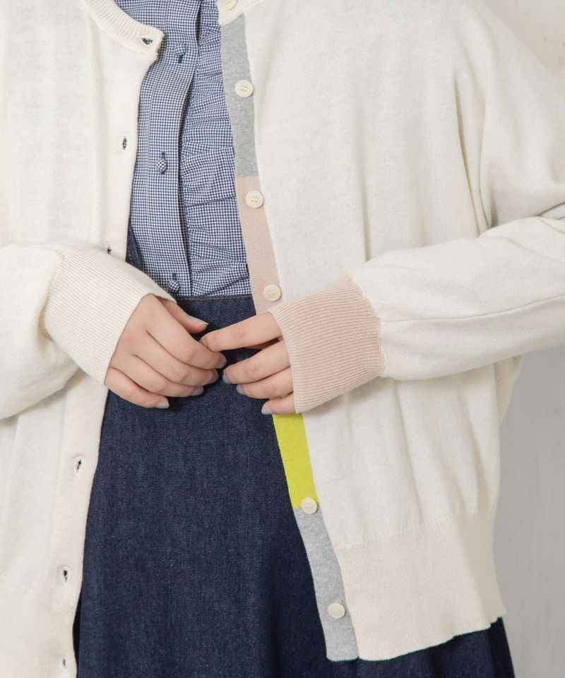 ・肌触りが優しいコットンの糸で編み立てたカーディガン。