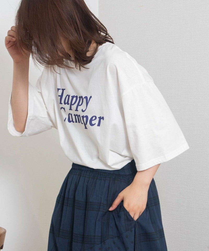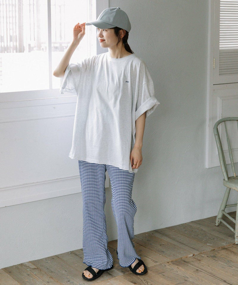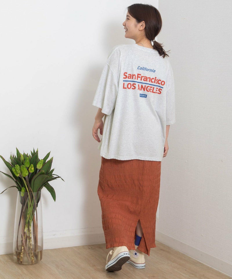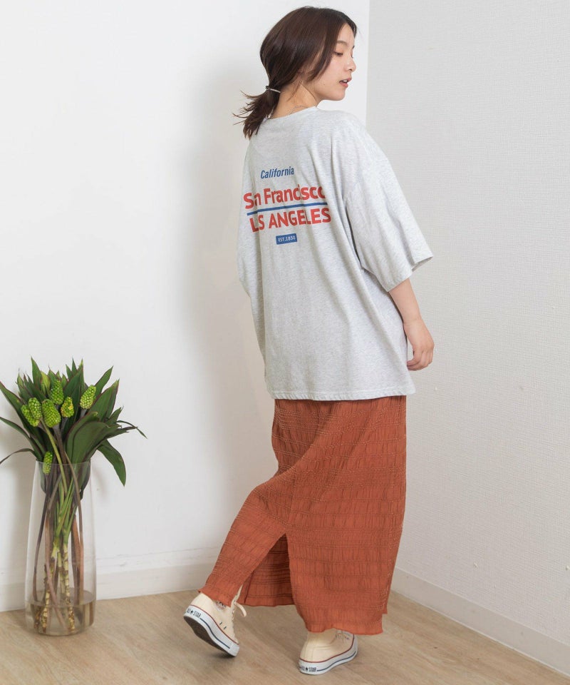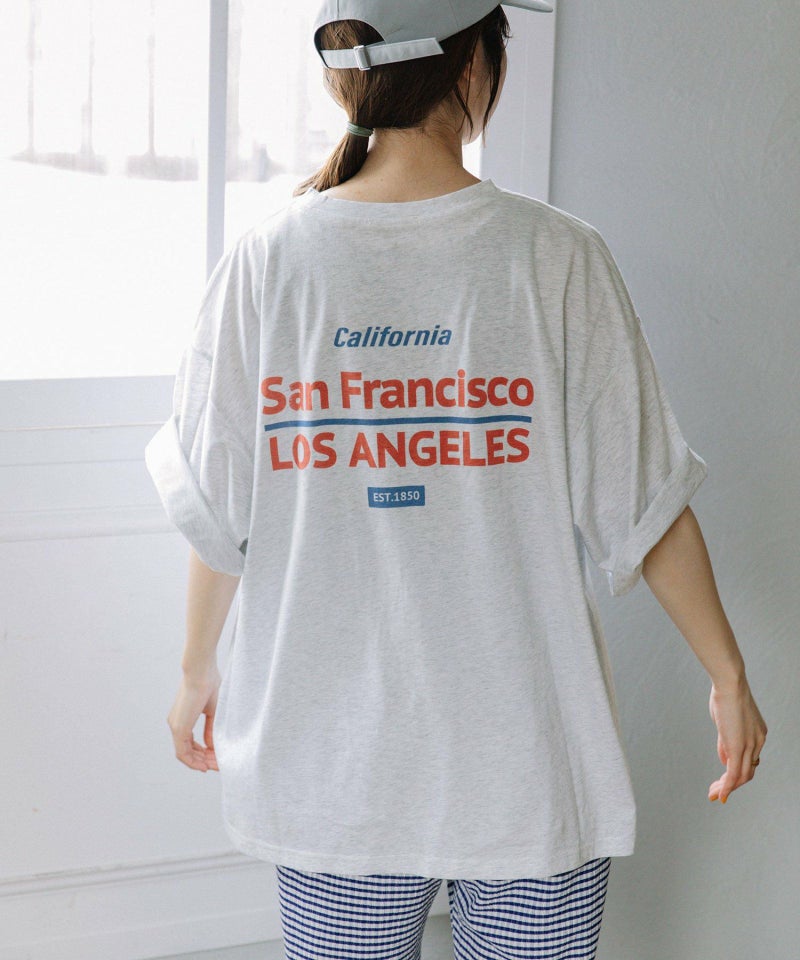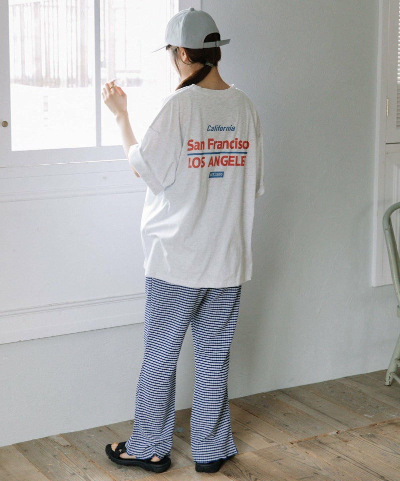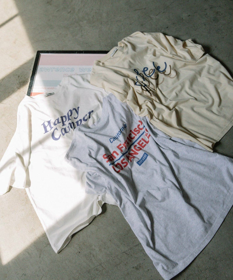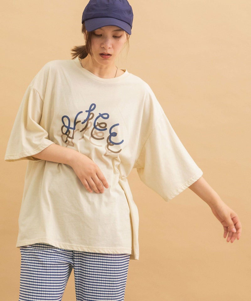 ・定番の着こなしもトレンドスタイルに仕上がる、オーバーサイズロゴTシャツ。スーベニアショップにありそうなキャッチーなロゴプリントを載せました。