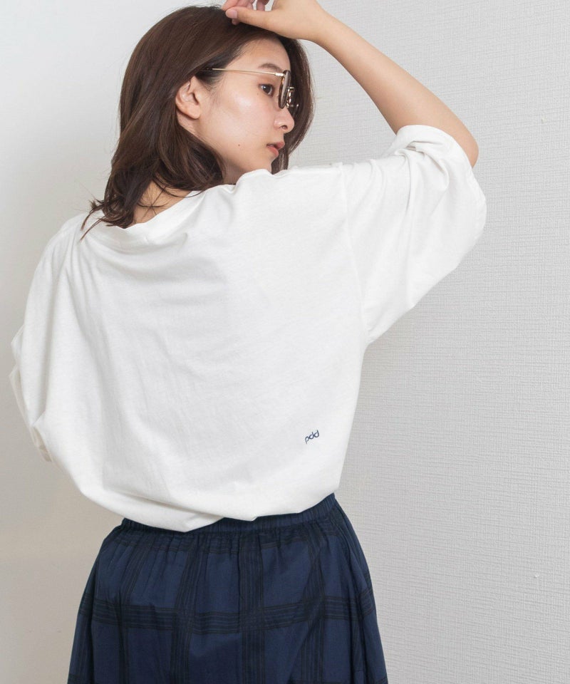 ・オフホワイトとキナリは右バックに、オートミールは左胸にさりげなくブランドロゴのワンポイント刺繍を入れています。