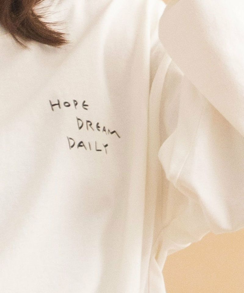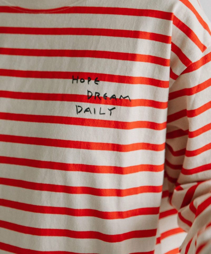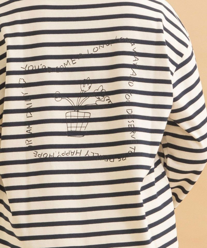 ・目を惹く大きなバックプリントとフロントの手書きのロゴがストリート感のあるアイテムです。ボーダーのプリントは馴染んでさりげなく見えるのもポイント。