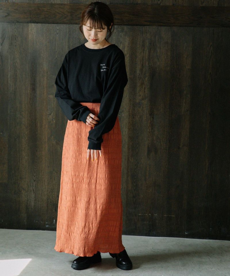 ・程よい張りとシャリ感が着心地の良いUSAコットンのロンTee。目の詰まったしっかりとした生地は、着込んでいく程に風合いよく、肌に馴染んでいくのも特徴です。