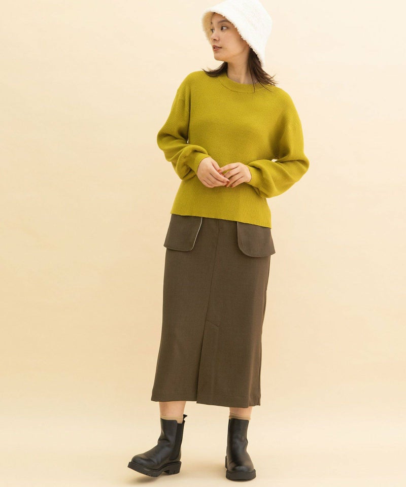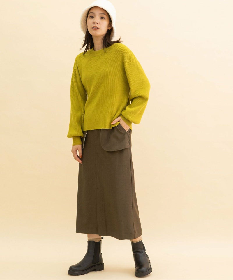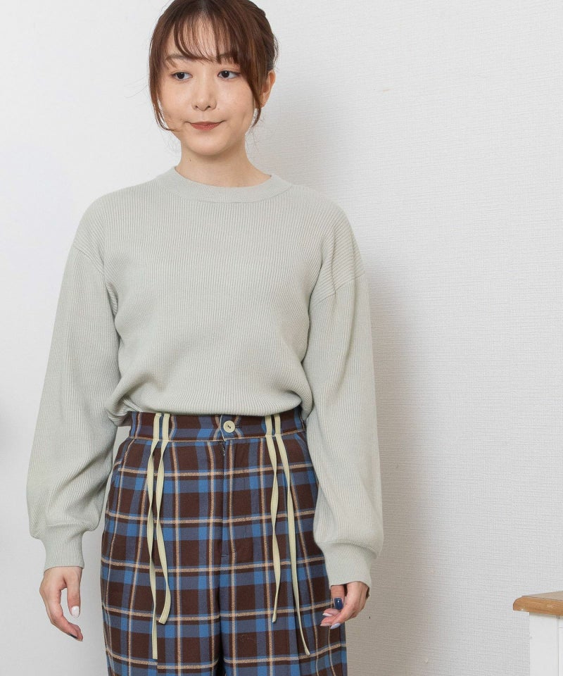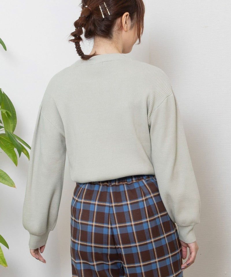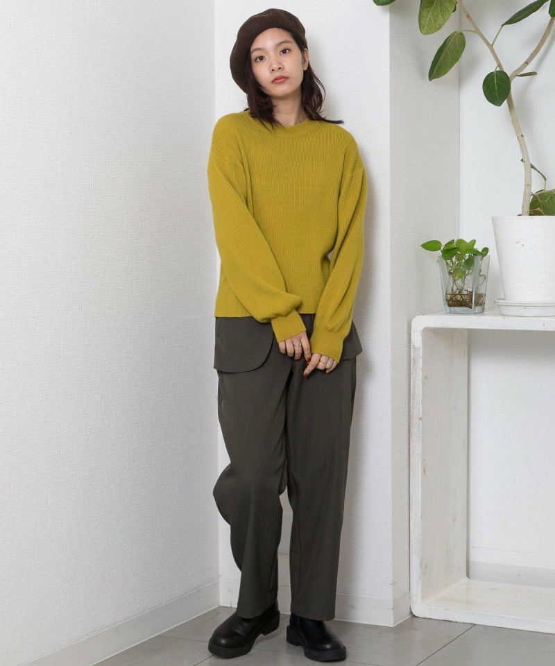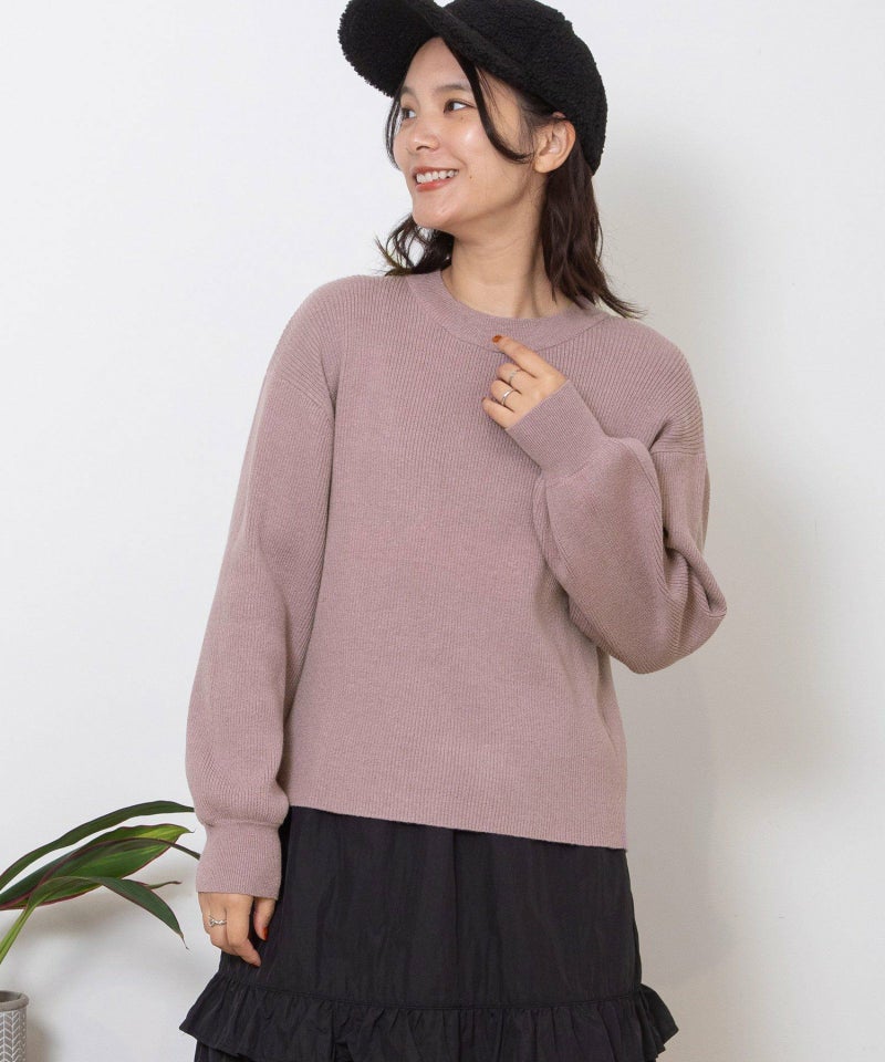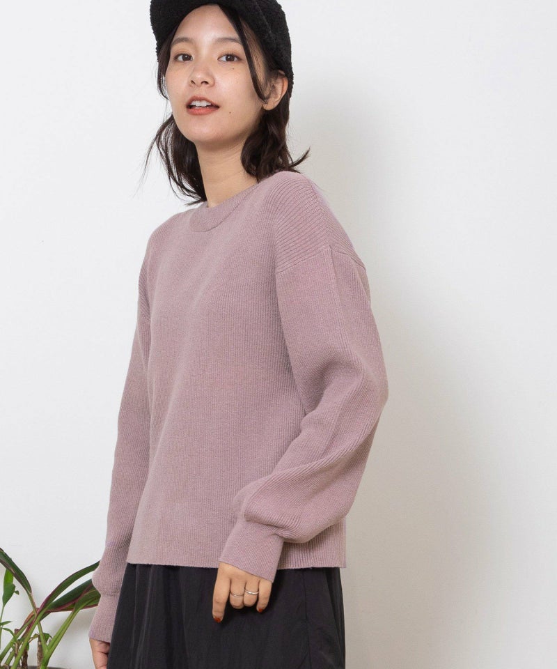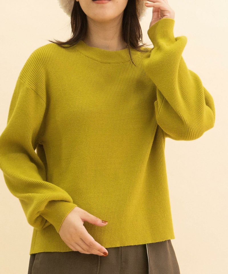 伸縮性の良いリブ編みで、程よくフィットする着心地のリブニット。袖がやや膨らんだデザインのシンプルなシルエットです。インナーとしても着られる適度な厚みに仕上げました。もちもちとした肌触りが心地よい、着回しのきくニットです。
