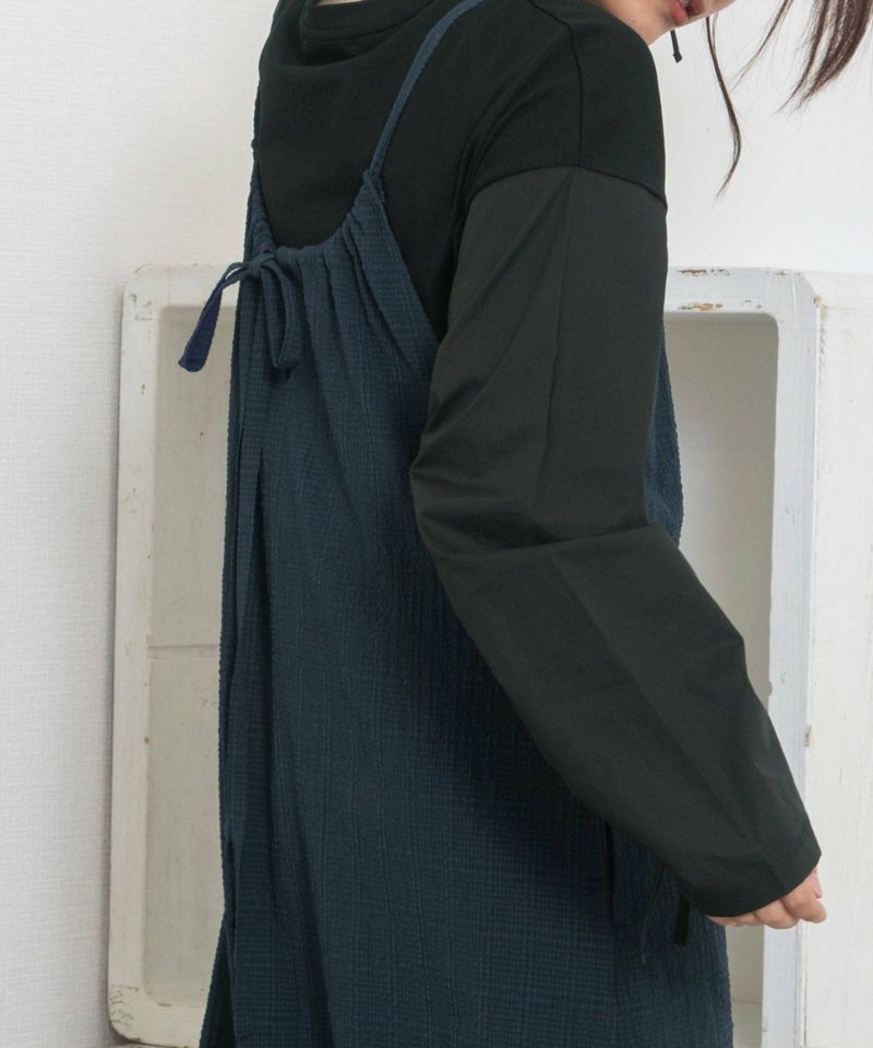 ・後ろの紐で長さ調整が可能。リボンが長めでアクセントになります。