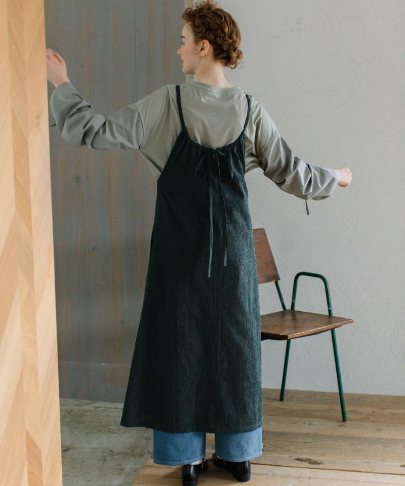・ぽこぽことした表面感が楽しいチェック素材のワンピース。インナー次第で長く着回せるジャンスカデザインで、少し伸縮性がある生地なのでアクティブに着られます。軽い素材で体のラインを拾いすぎない程良いシルエット。