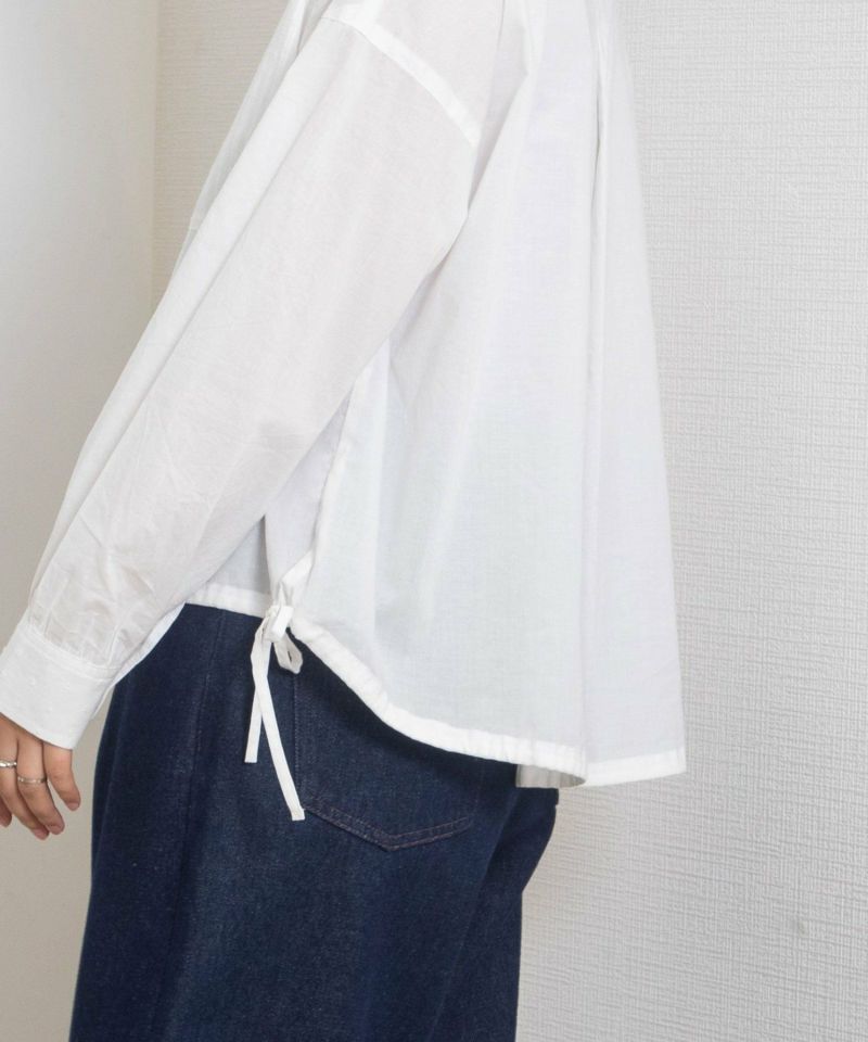 ・裾はバックに向けて前後差のあるラウンドテールに。紐でシルエットに変化を付けても楽しめます。