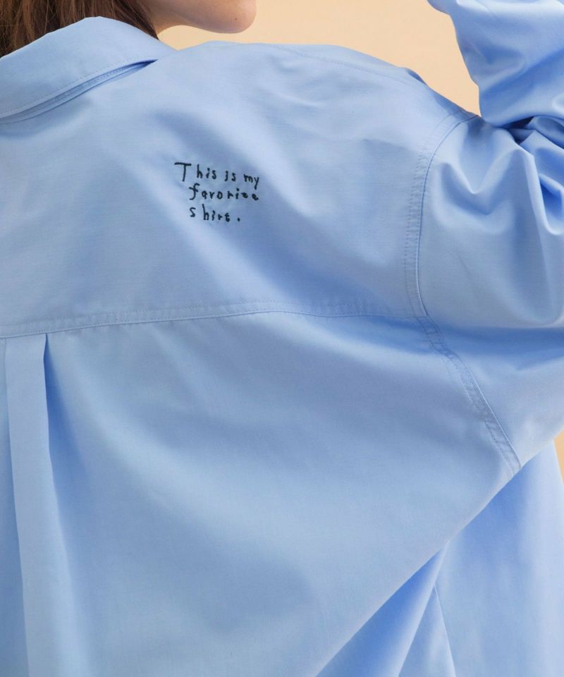 ・胸元のポケットにはpdd(プードゥドゥ)刺繍入り。バックスタイルの肩にはThis is my favorite shirtの手書きの文字刺繍が施されています。