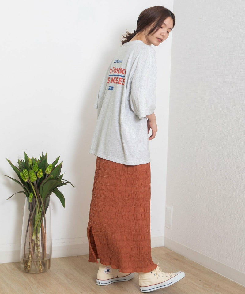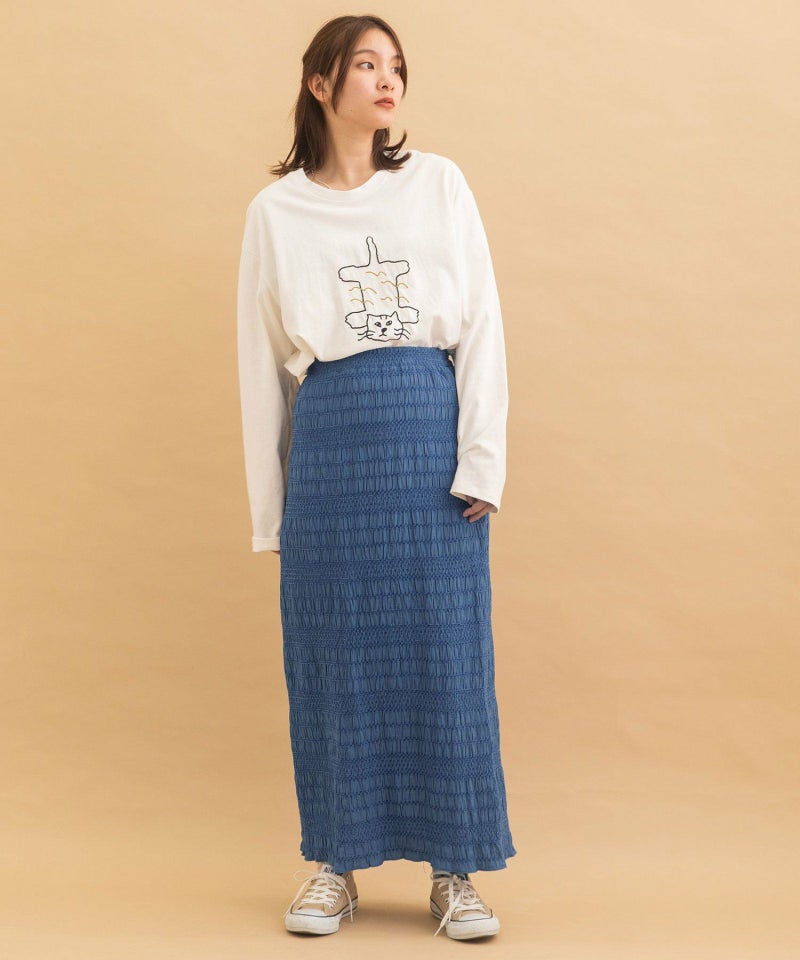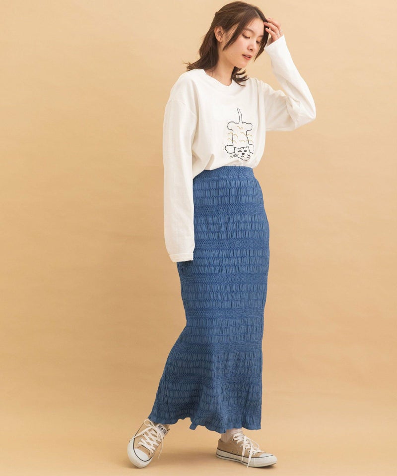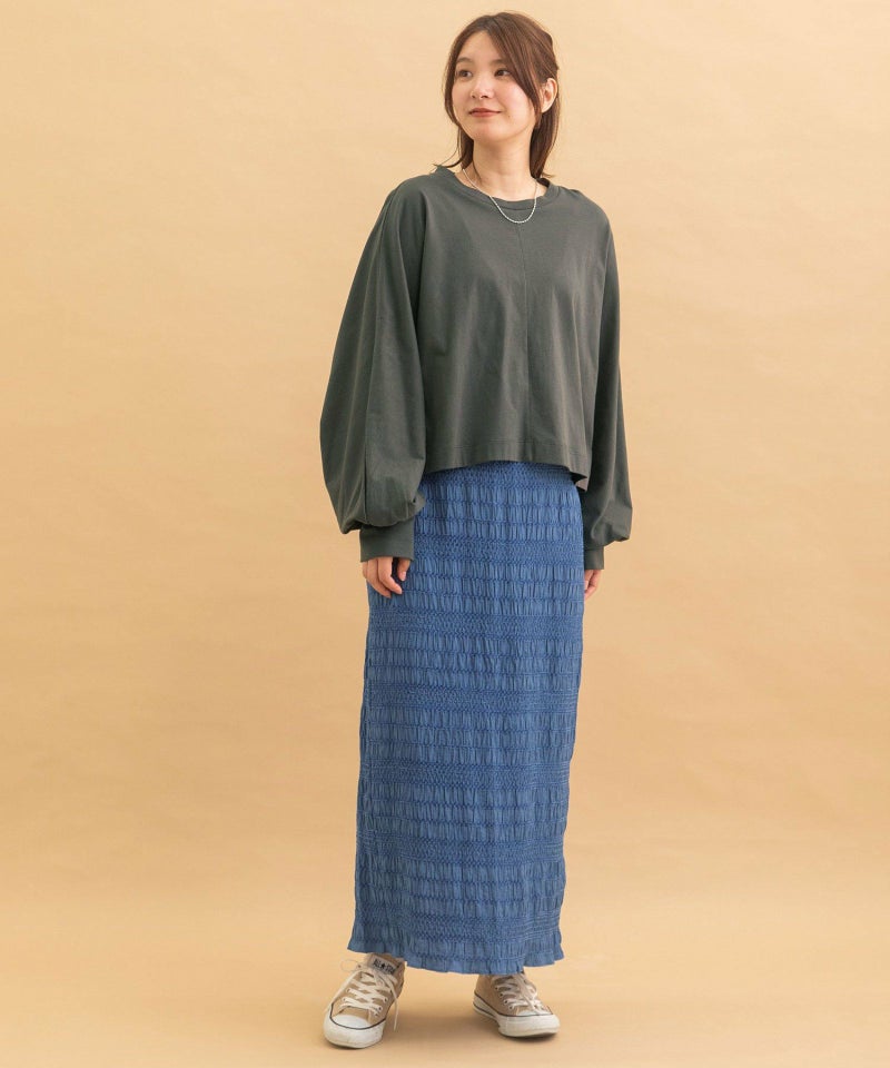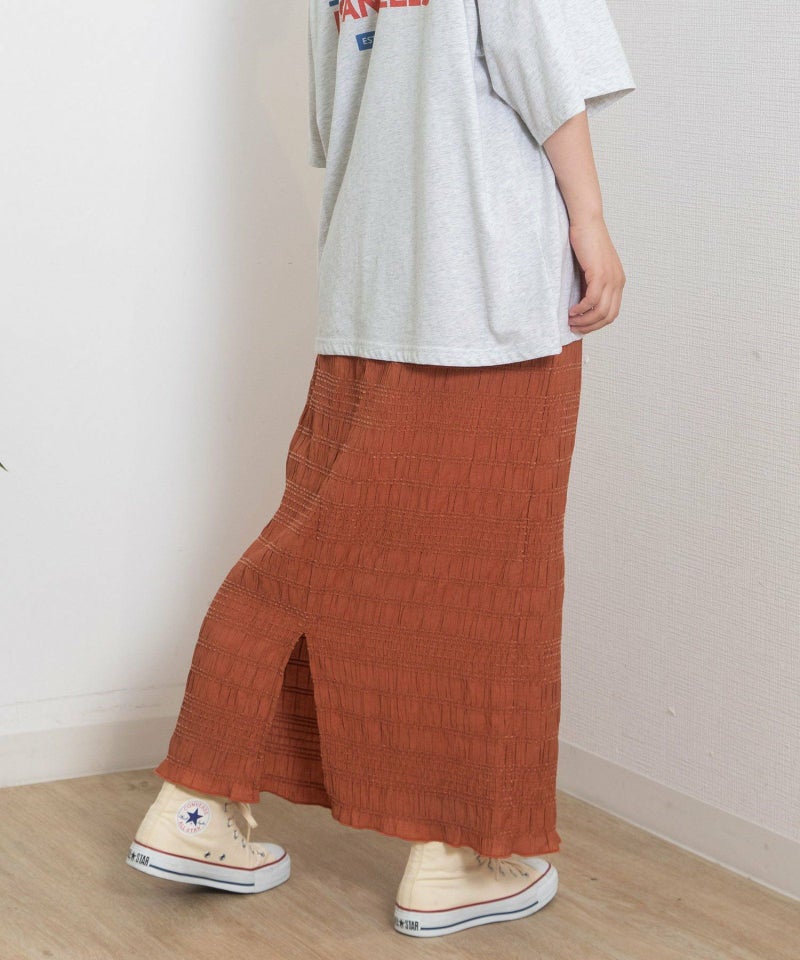 シャーリングが特徴的な軽やかスカート