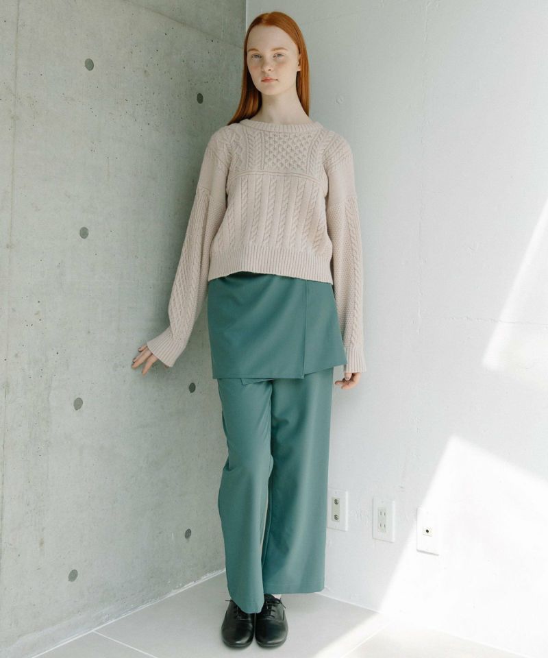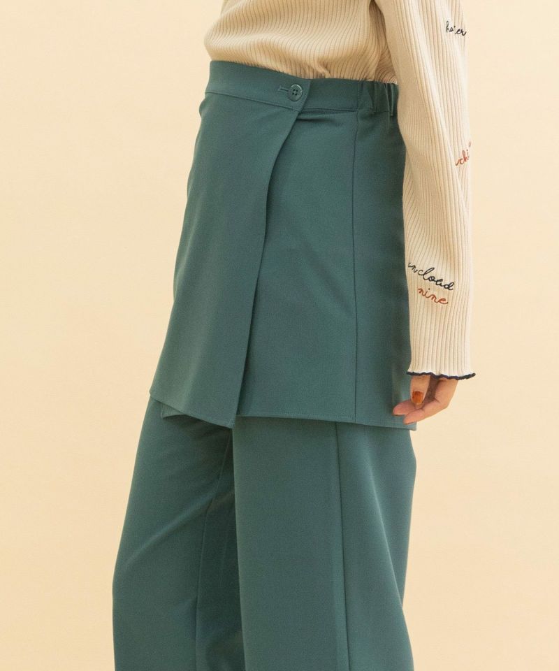 トレンドライクなレイヤードパンツとしてセットではもちろん、パンツ単体での着用もできて着回しのできるアイテム。ラップスカート部分はビスチェのように合わせてセットアップコーデを楽しめます。