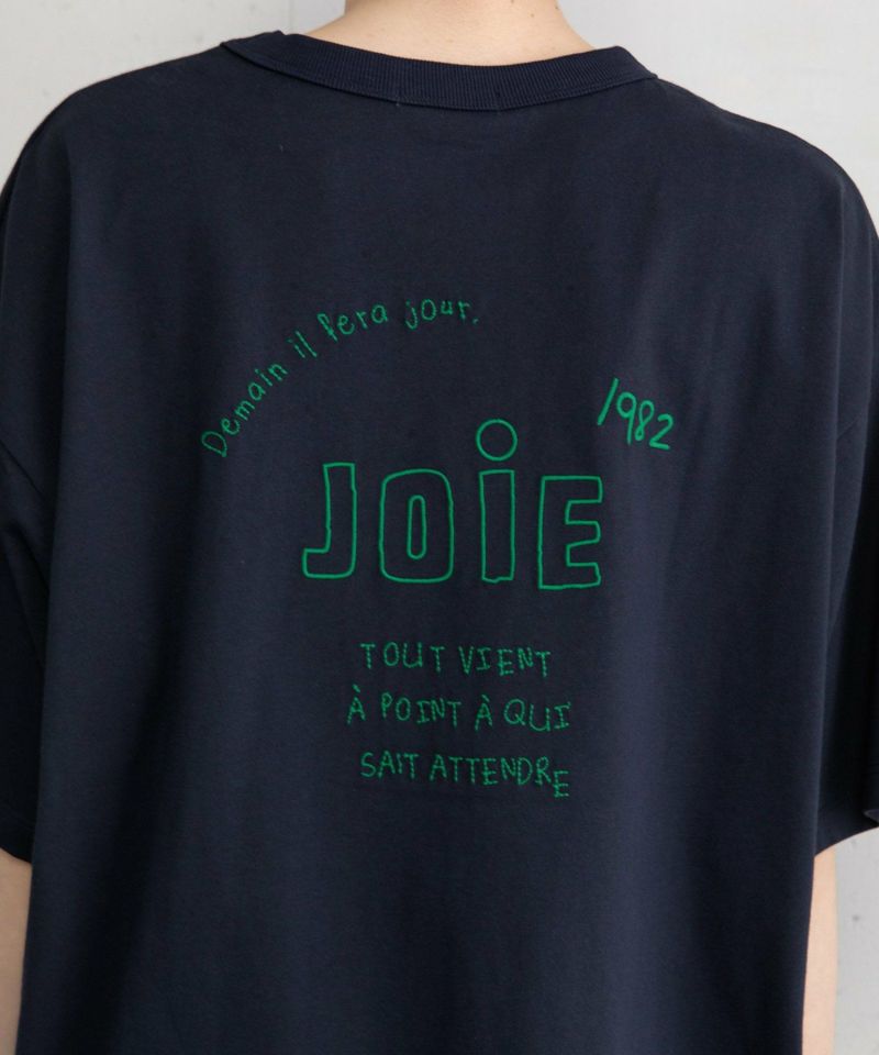 ハンドステッチ風のロゴ刺繍を背中に施したTシャツ。スタイリングの印象的なアクセントに。ラフに着られるゆったりとしたシルエットで、1枚でサマになります。ウエストイン・アウトどちらのスタイルも決まる丈感。カジュアルスタイルの主役にぴったりの1枚です。