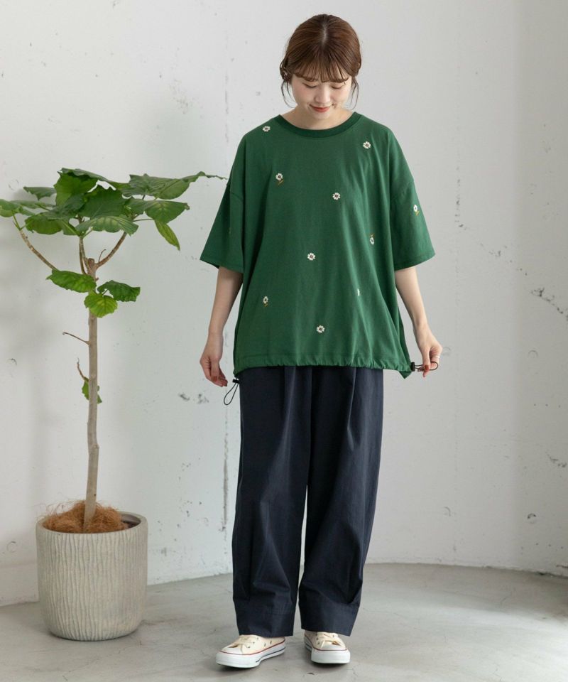ざっくりとしたフラワー刺繍が目を引く、存在感たっぷりのオーバーサイズトップス。裾のドロストコードを絞ることでシルエットの変化も楽しめ、気分やコーデに合わせた着こなしが叶います。ゆるっとデニムと合わせて旬のバランスに。