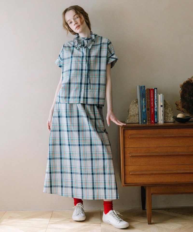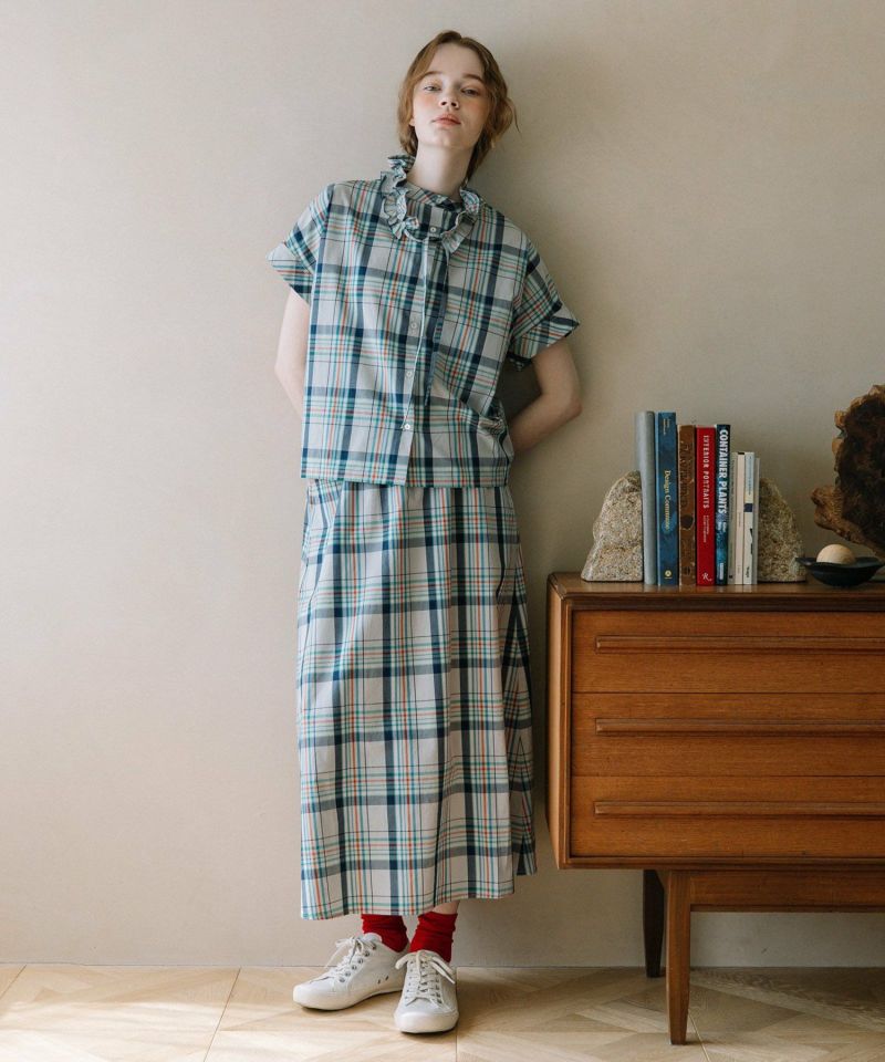 同素材の2511147822 マドラスチェックフレアスカートとのセットアップコーディネートもおすすめです。