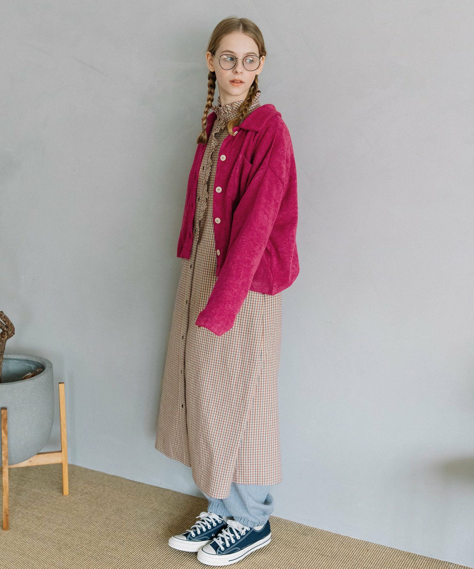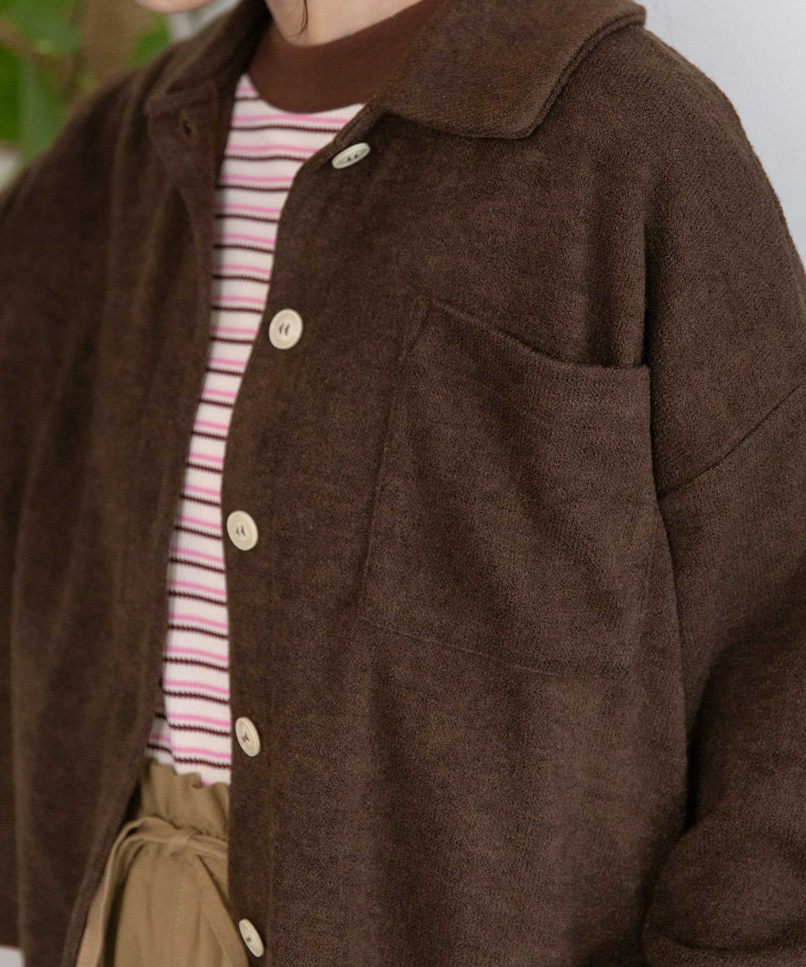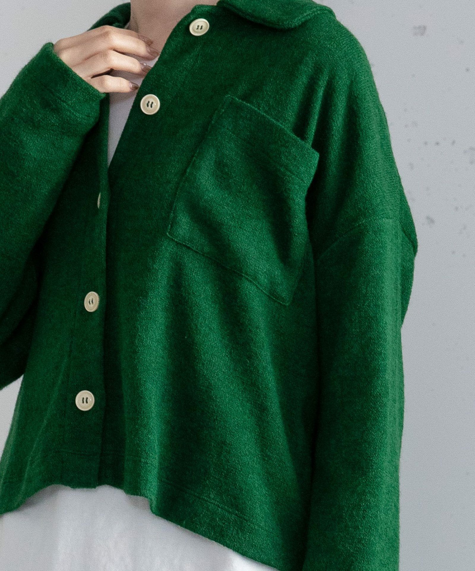 暖かみのあるニットソー生地のトップス。衿付きできちんと感があり、ボタンを開いて羽織、ボタンを閉じてプルオーバーとしても着られます。ストンとした袖口で折り返しもしやすく、暗くなりがちな秋冬コーデの差し色になり、選ぶのが楽しくなる色展開です。