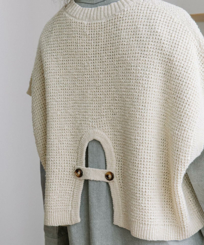 ナチュラルな風合いが魅力のワッフル編みニットベスト。スラブヤーンの表情豊かな糸で、ほんのりラフなムードに仕上げました。ワイドなシルエットとショート丈のバランスが今っぽく、ロンTやシャツとのレイヤードで、こなれ感のあるカジュアルスタイルが完成します。