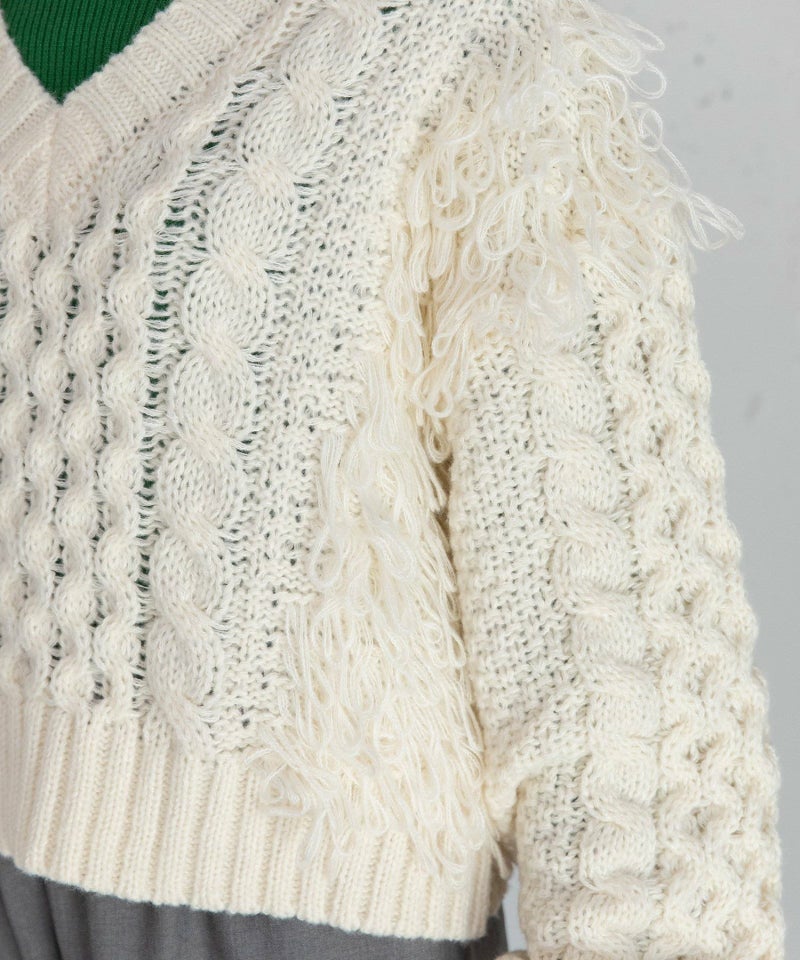 【MORE PRICE DOWN】ループフリンジVネックケーブルニット