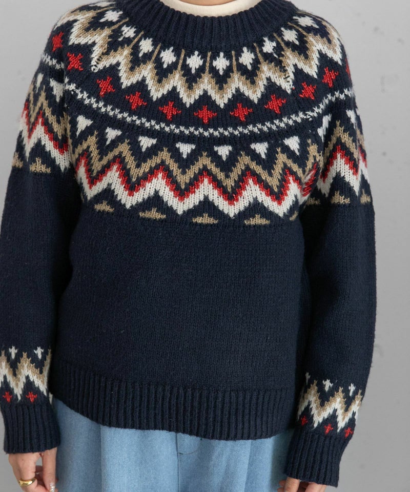 ノスタルジックなムードが漂う、求心柄のジャガードニット。大人っぽくも、どこかクラシックな雰囲気のある1枚。カラーによって印象がガラリと変わるのも魅力。スカートでレトロガーリーに、パンツ合わせでカジュアルにも楽しめ、スタイリングの幅が広がる1枚です。