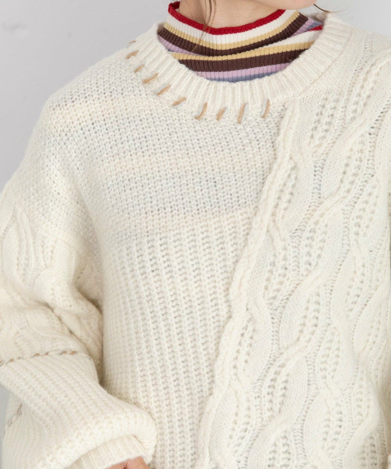 【MORE PRICE DOWN】ハンドステッチななめケーブルニット