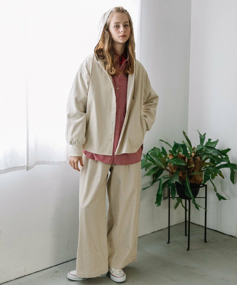 同素材の2551148266 コーデュロイドロストイージーパンツとのセットアップコーデもオススメです。
