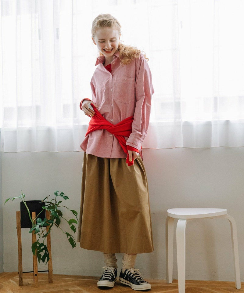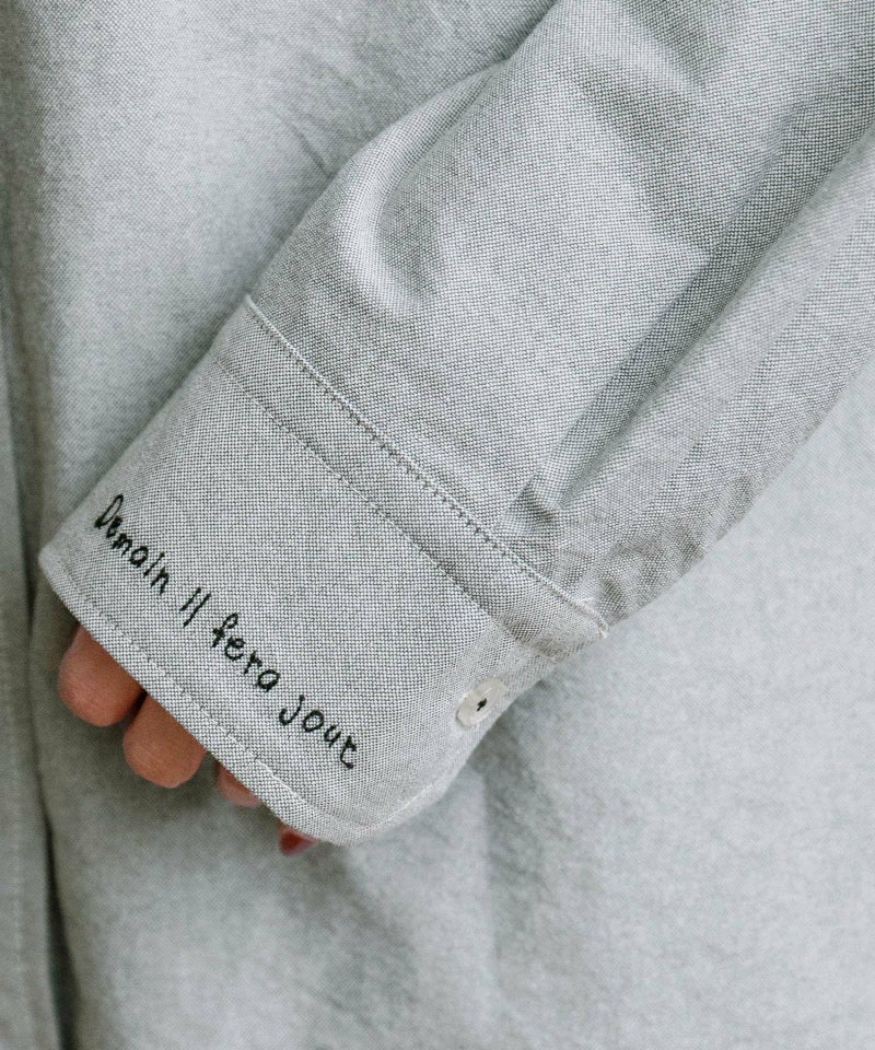 袖口にそっと効かせた、手描きタッチのロゴ刺繍のさりげない遊び心がポイントのオックスシャツ。やわらかなオックス素材を使用したベーシックなシャツです。フロントのダブルポケットがアクセント。ややゆとりのあるシルエットで、羽織としても使いやすい1枚。スタイリングの主役になるレッド、着回しやすいブルー・ブラックの3色展開。