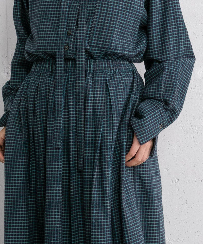 オリジナルの格子チェックスカート。ふんわりとした風合いで柔らかく、触り心地が気持ち良いコットンビエラ素材を使用しました。ふんわりと広がるタックを取ったデザインで、ニットにもスウェットにも可愛く合わせていただけます。バックゴム仕様でリラクシーな履き心地でありながらトップスインもきれいにきまります。。両サイドポケットつき。