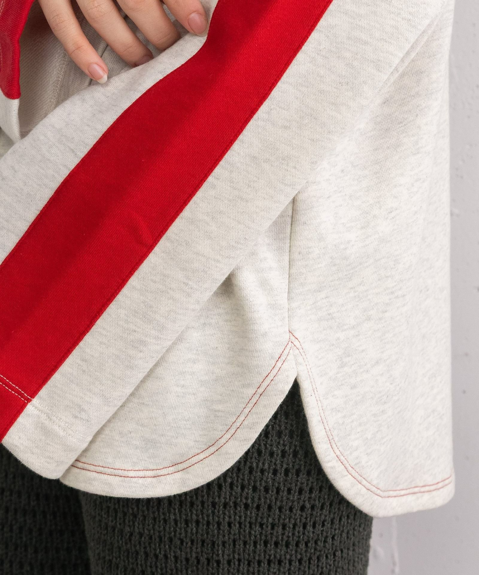 「HRU(How are you?)」とカジュアルな挨拶をプリントした、遊び心のあるデザインプルオーバー。ポリエステル混の裏毛素材を使用し、軽やかで重たくなりすぎない着心地です。ロゴは少しかすれた表情のフロッキープリント、袖の配色ラインがアクセントとなり、1枚で着映えします。すとんとしたストレートな袖は、袖口を折り返しての着用もおすすめ。裾のラウンドテールが、こなれた印象をプラスします。