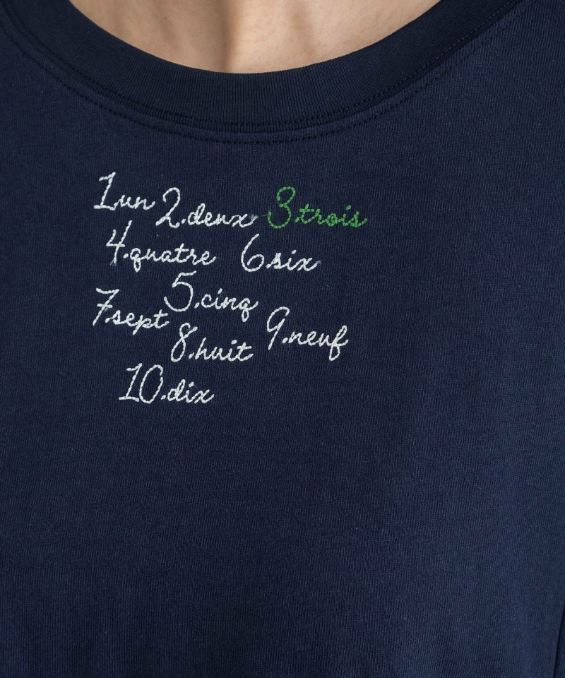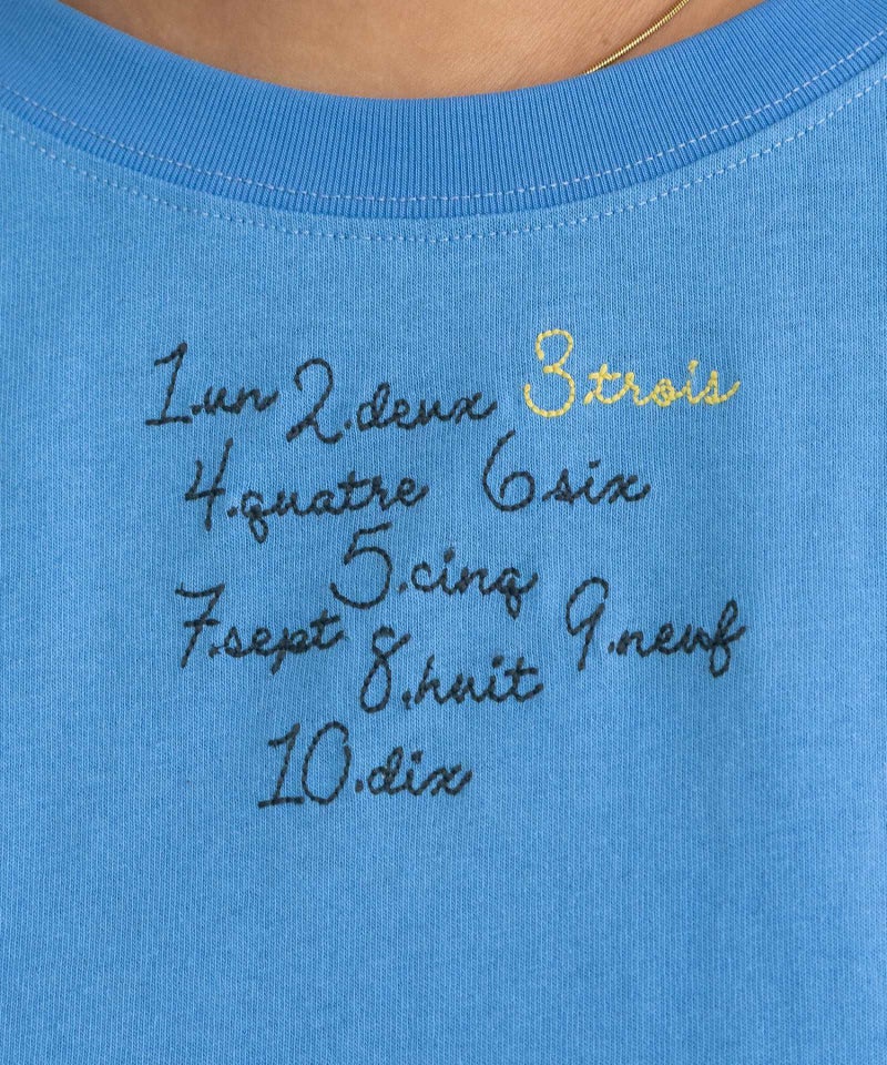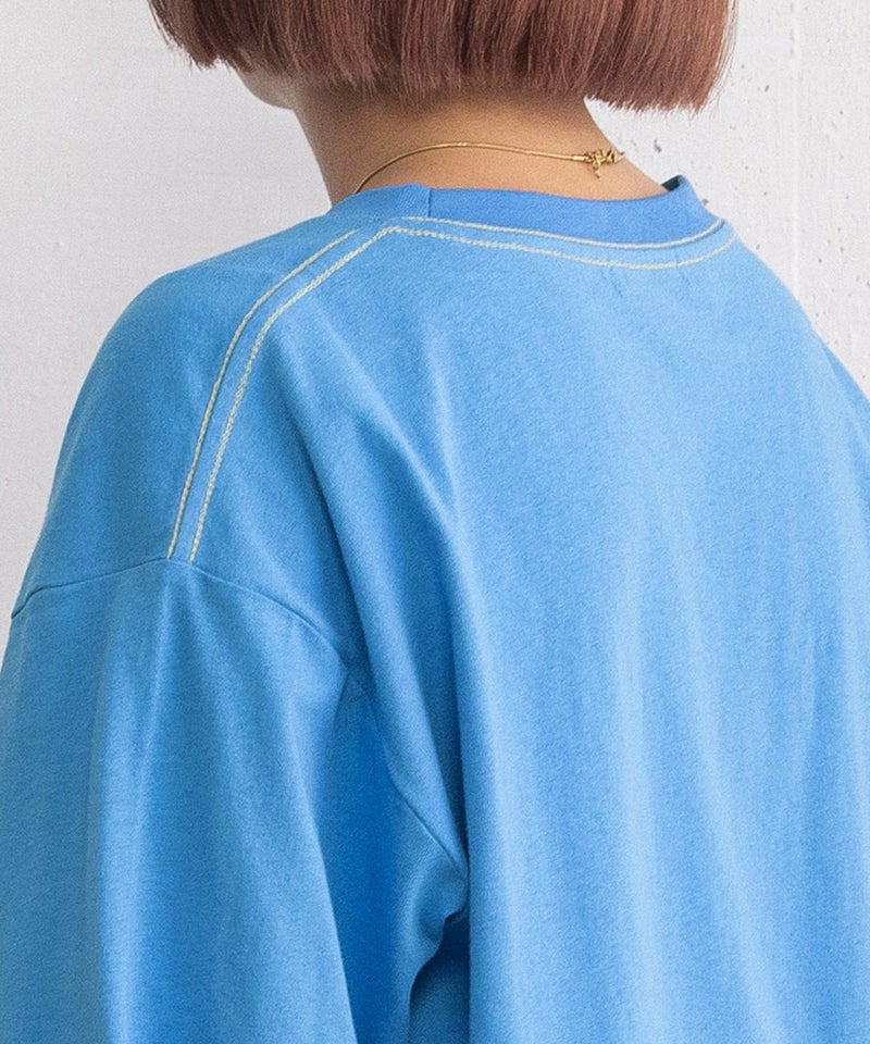 ベーシックで使いやすいシルエットに、スリットディテールが新鮮なロンT。スリット部分は結んで着用することもでき、コーディネートのポイントになります。素朴な風合いの空紡糸天竺を使用し、程よくカジュアルな印象に仕上げました。袖口はリブでまとめ、インナーとしても重ねやすく、袖を捲し上げやすい仕様です。フロントには手描きタッチの文字をザクザクとしたステッチで刺繍し、ジャンスカや羽織を合わせた時にポイントになるようにしています。
