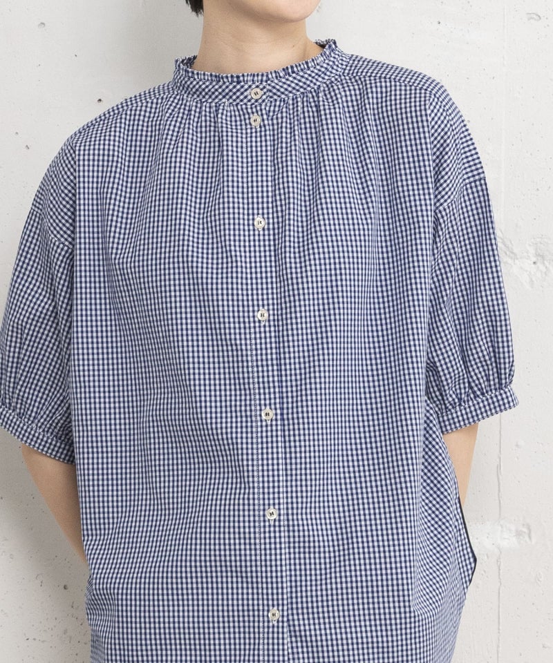 カットソーと布帛生地をドッキングさせたデザイントップス。細巾で控えめなフリルデザインと、ぷっくりとしたパフスリーブがキレイめなスタイルにも使えます。ブラウスのようにきちんと見えながら、カットソー素材の柔らかな肌なじみが着やすいポイント。前後どちらでも着用できるフレキシブルなアイテムです。