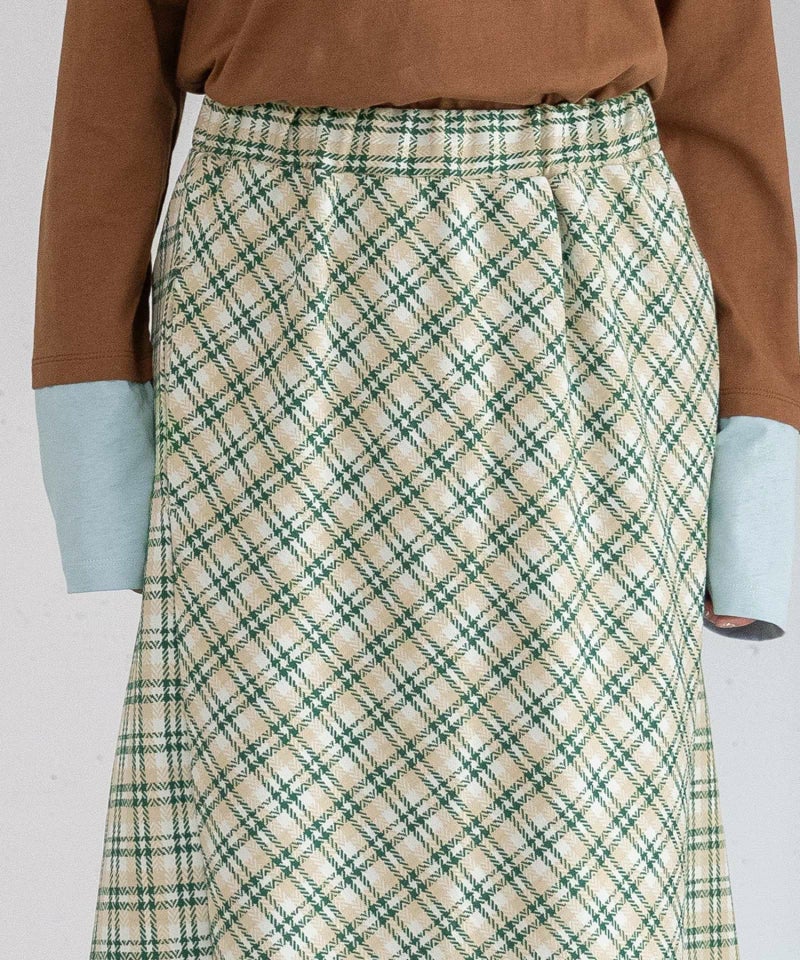 カットソーのジャガード素材を、アソートでピックアップしたスカート。伸縮性があり、快適でとても履きやすい生地感です。それぞれキャッチーなテキスタイルで、コーディネートを華やかに演出します。程よいセミフレアシルエットが上品で、カジュアルスタイルにもぴったり。ウエストはぐるりゴム仕様で、内側の紐によりサイズ感の調整も可能です。両サイドポケット付き。