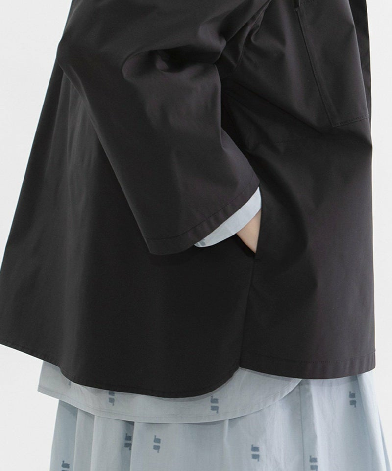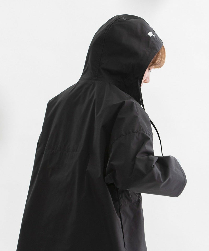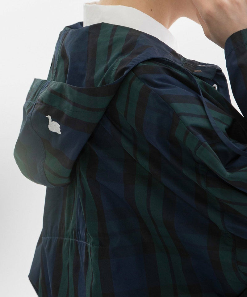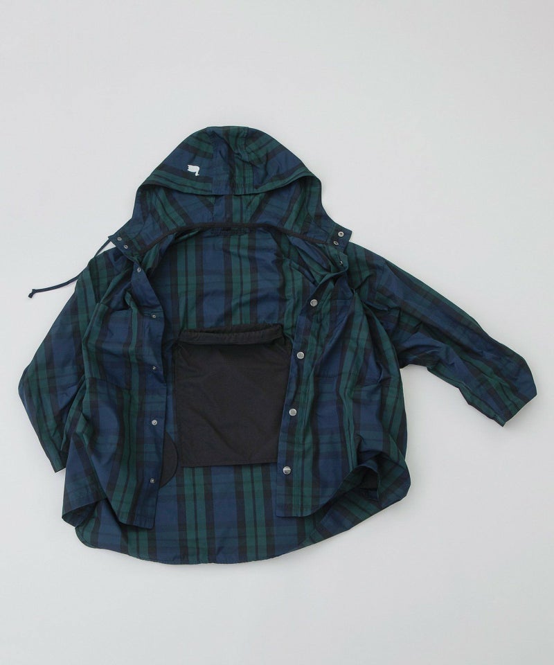 ちょっと肌寒い日に軽く羽織れる、ポリエステルのフードシャツ。ブラックは張りのあるコーティングタフタ、チェックはしっかり肉感のあるツイル生地の2色展開です。両胸と両脇ポケット付きで実用性もあり、フードの後ろにはスワン刺繍がワンポイントを効かせています。背中内側の巾着にコンパクトに収納でき、持ち運びにも便利です。