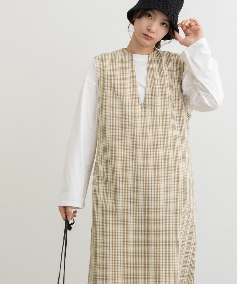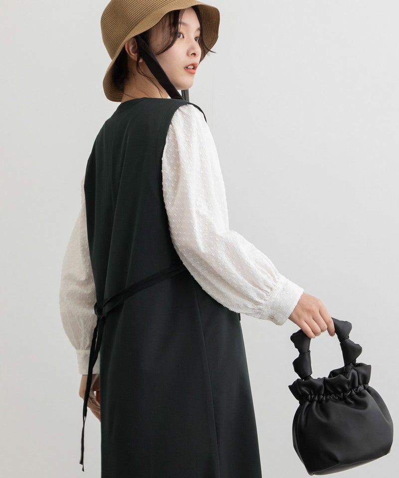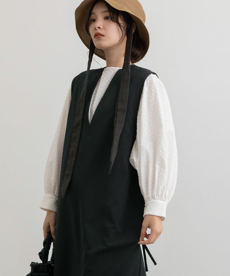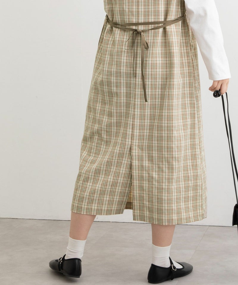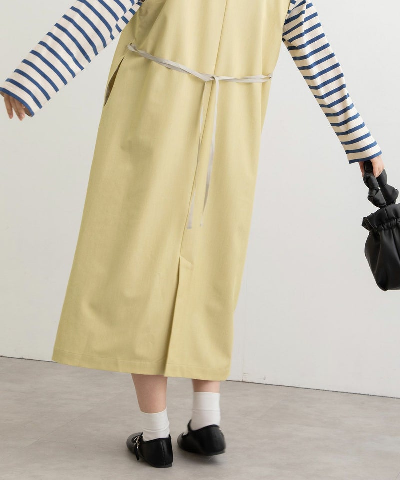 ・きちんと感のあるきれいめ素材で仕立てたジャンパースカート。