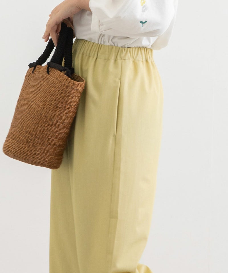 ・きちんと感のあるきれいめ素材で仕立てたコクーンパンツ。