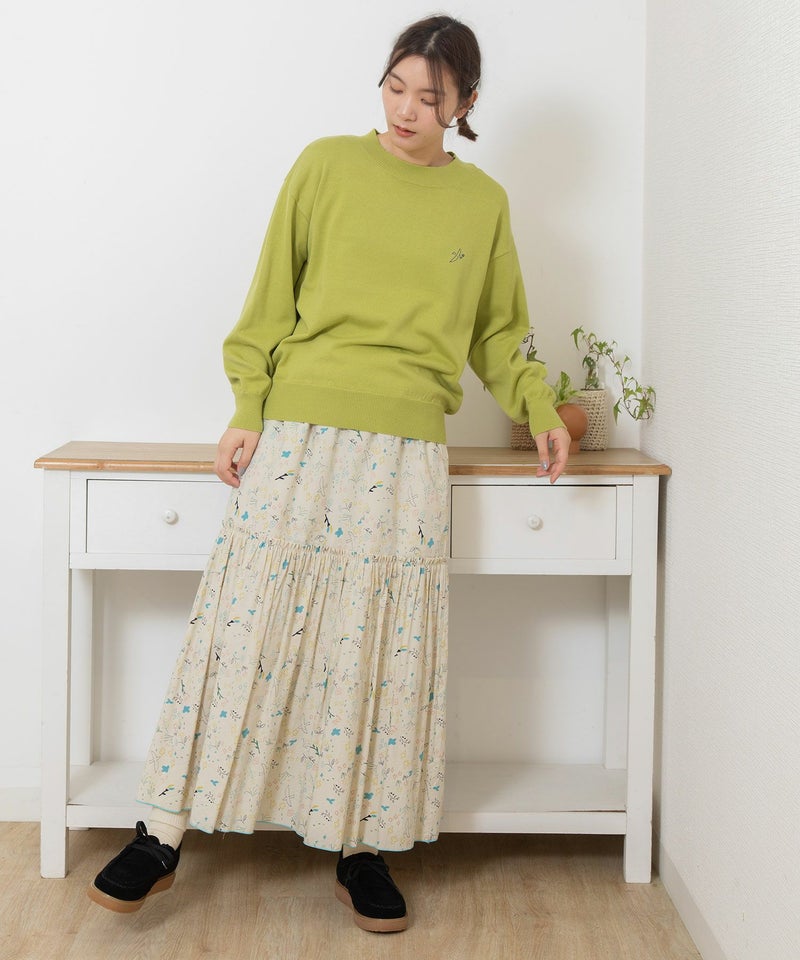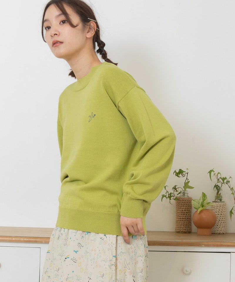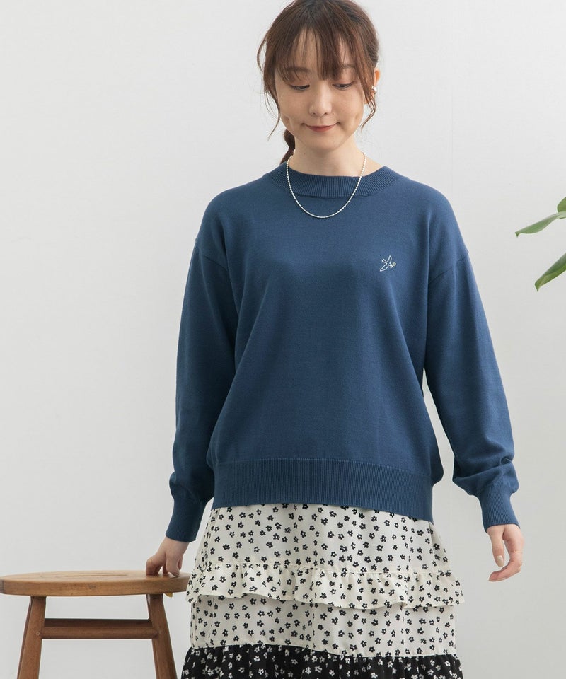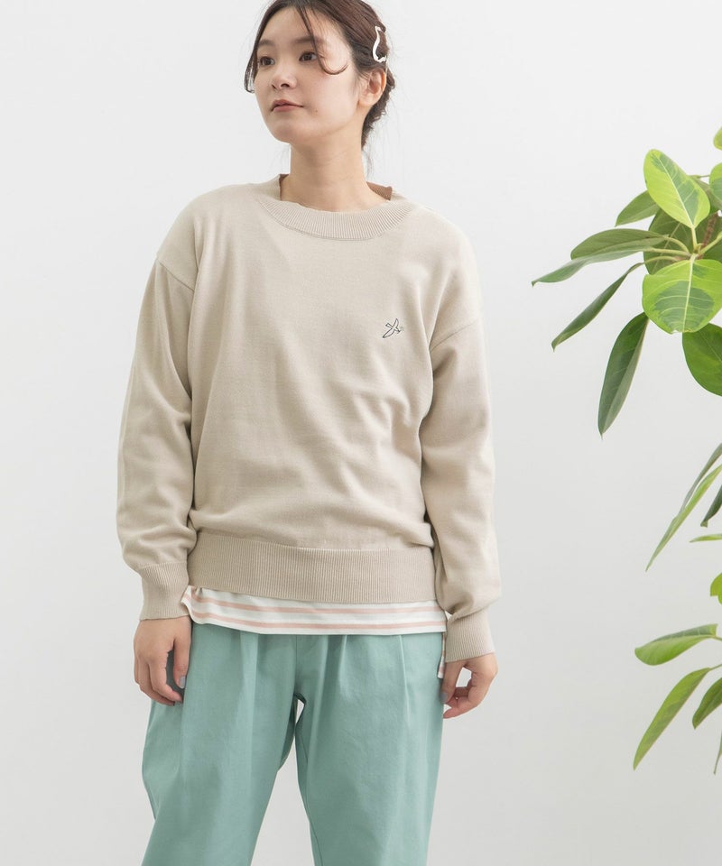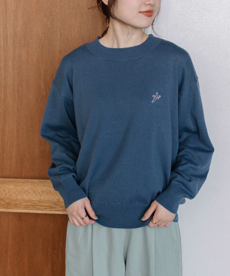 ・左胸には"花を運ぶとり"のさりげないワンポイント刺繍入り。