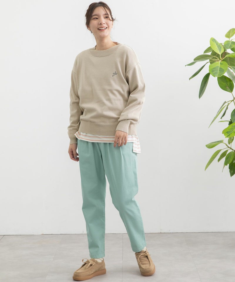 ・程よい厚みで春先や秋口にも着やすいアイテム。ゆとりのあるサイズ感でどんなボトムとも合わせやすいです。