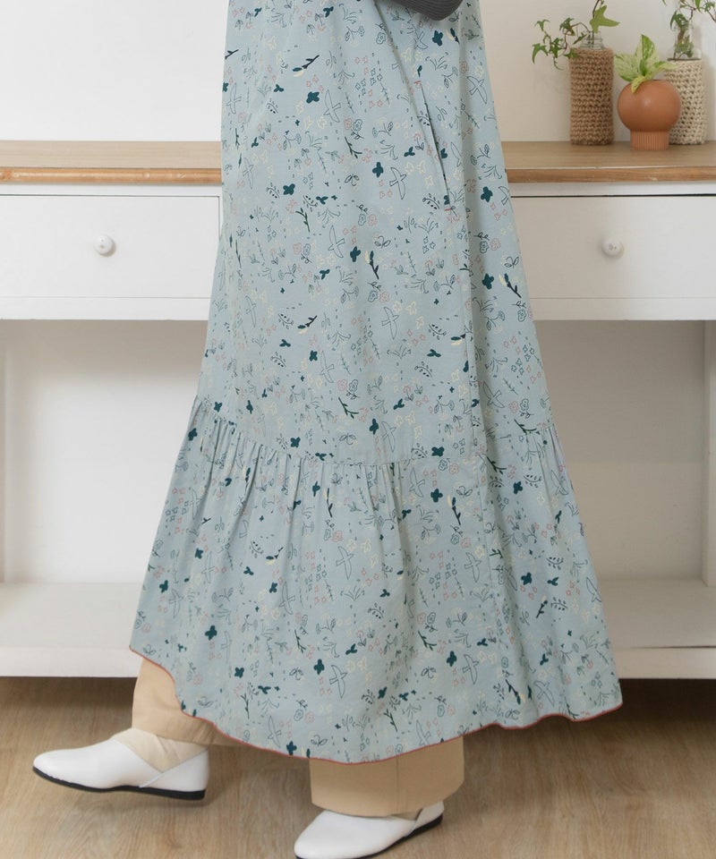 ・さらりとした滑らかな風合いとレーヨン特有のとろみのある生地で仕立てました。ギャザーフレアでふわっと広がるシルエット、インナー次第でロングシーズン着まわせます。