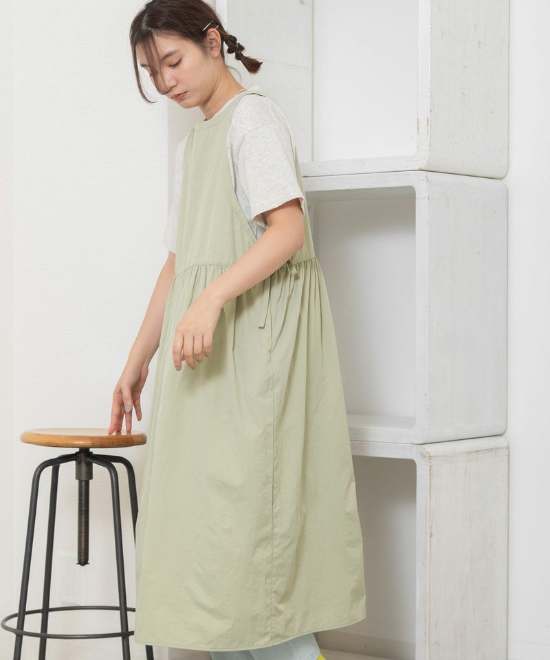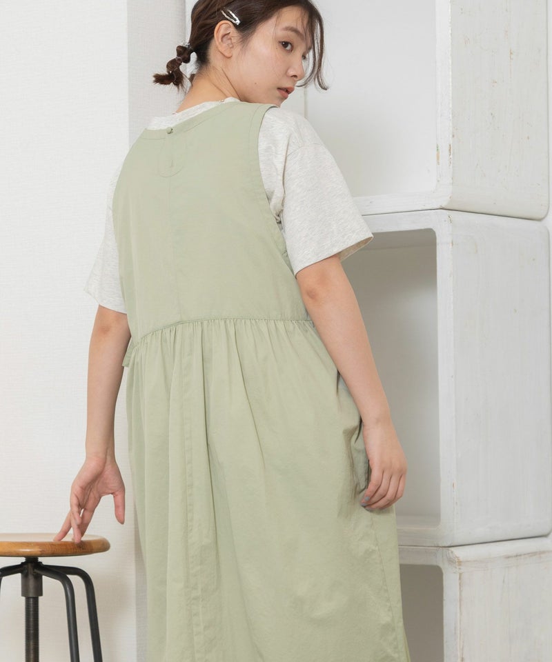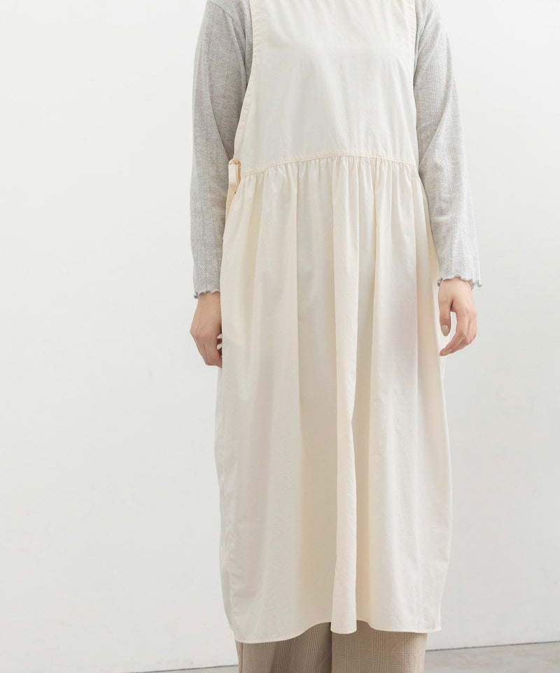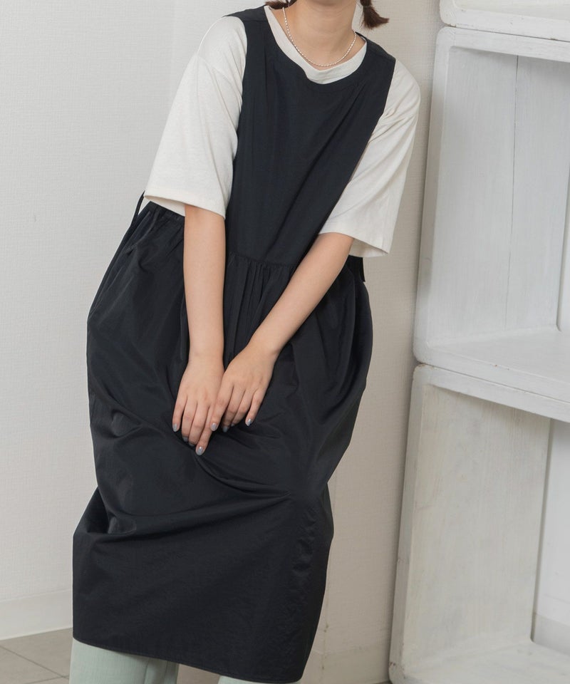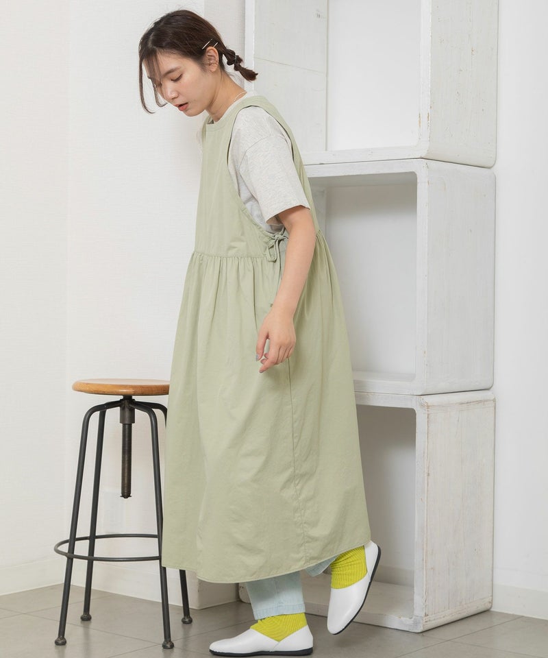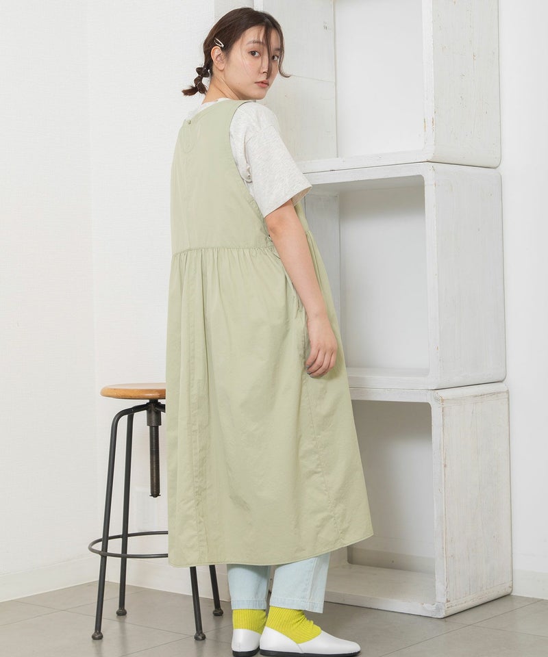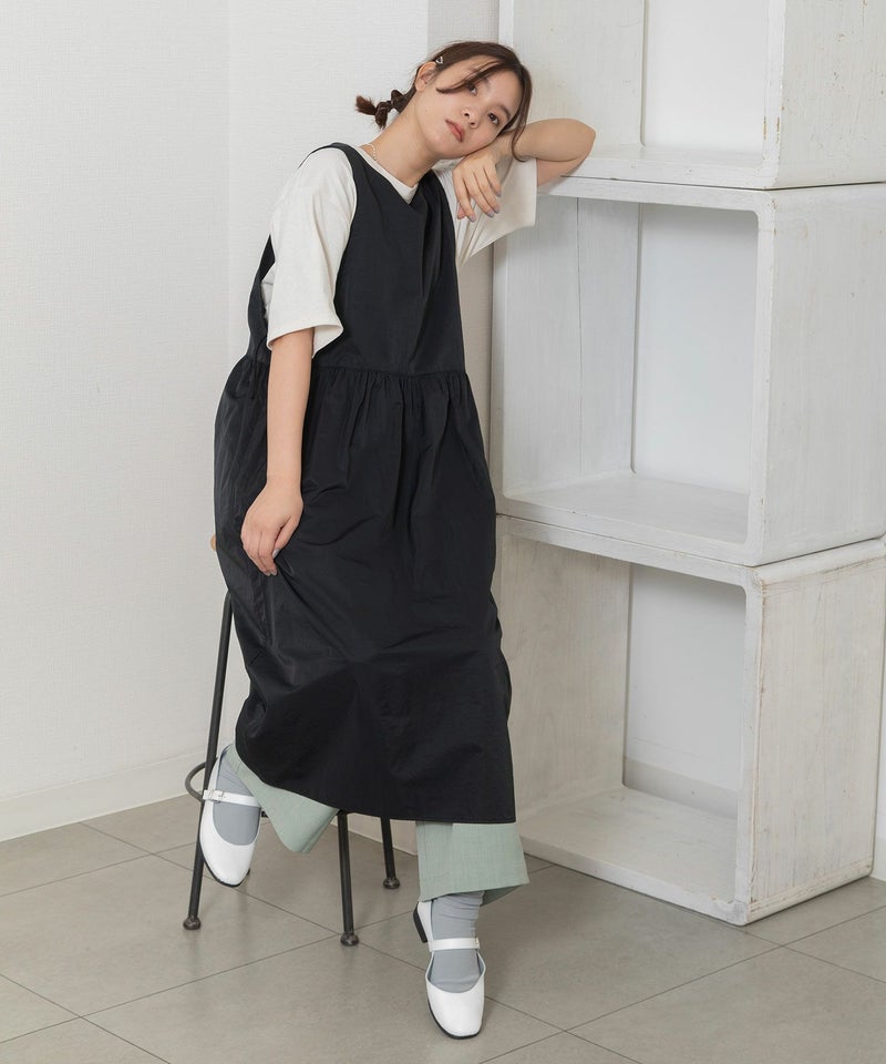 ・ニットからTシャツまでロングシーズン着まわせるのが魅力的なジャンスカ。ゆったりとあいたアームホールはインナーを選ばずに着られます。ポリエステルのセミマットな光沢感があるので、Tシャツを合わせてもきれいめスタイルに仕上がります。