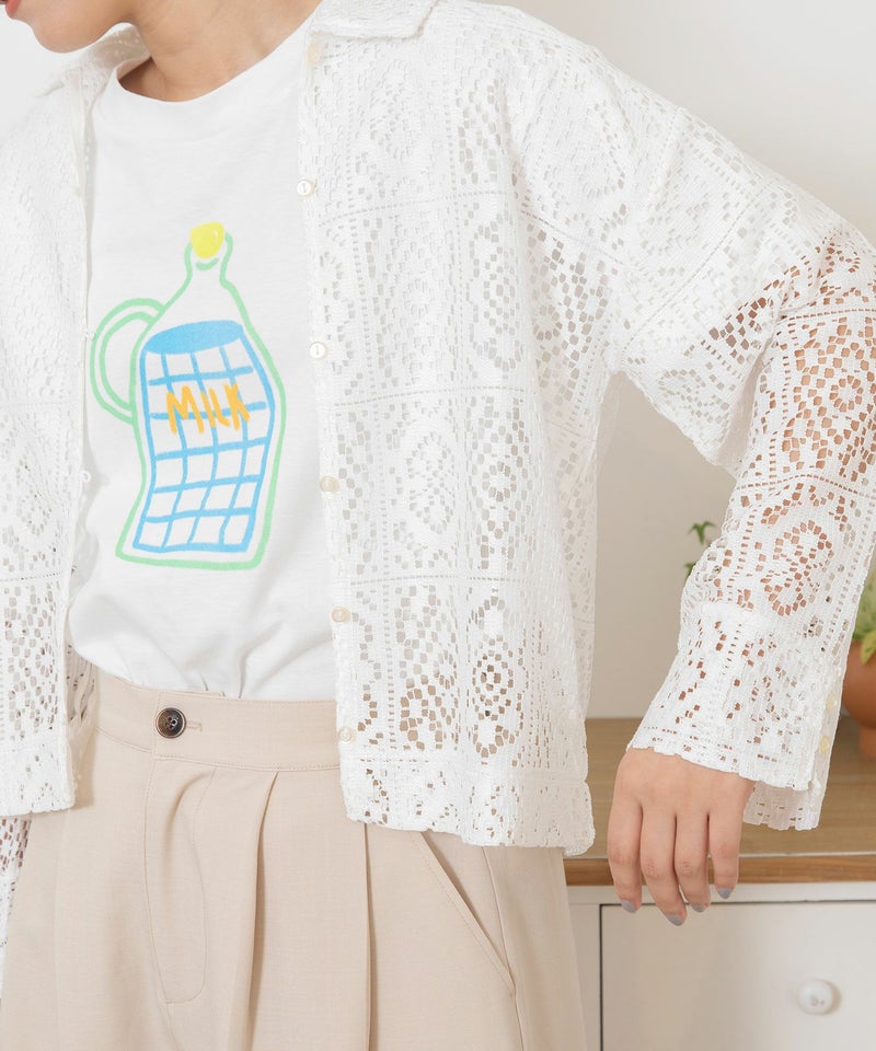 ・レイヤードスタイルが楽しめる透け感のあるレースシャツ。素材を生かしてカラーのインナーを透けさせたレイヤードスタイルを楽しむのもおすすめです。