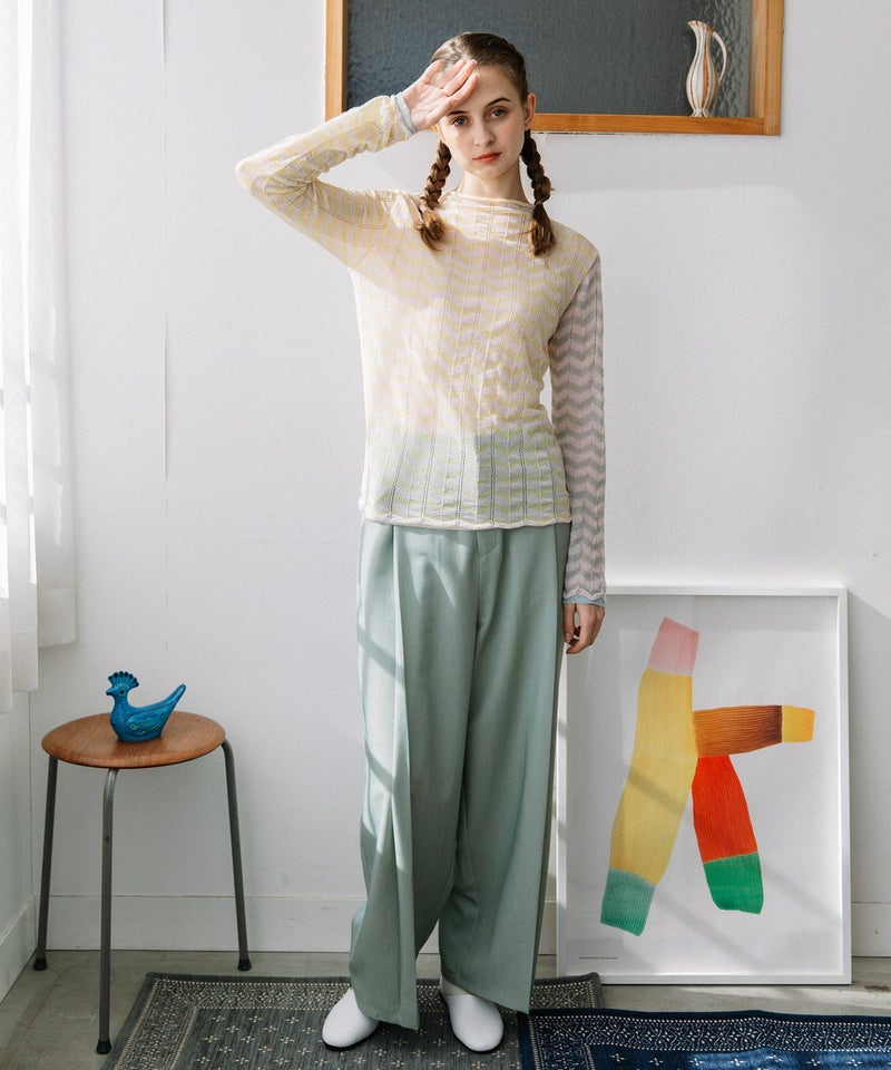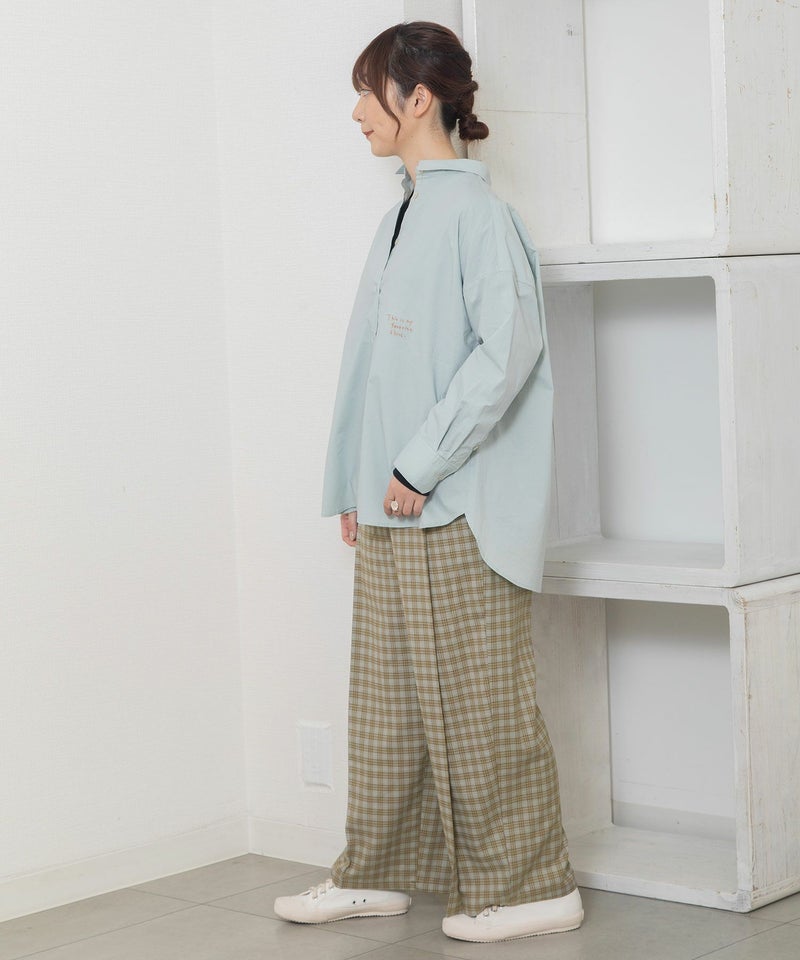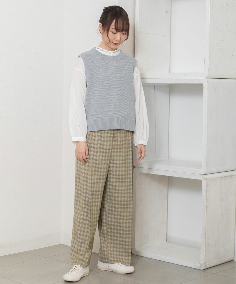 ・深めにタックを取り、体のラインを拾わないワイドなシルエットのパンツ。きちんと感のあるきれいめ素材で仕立てました。