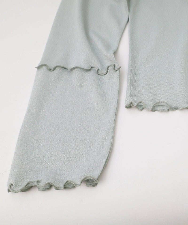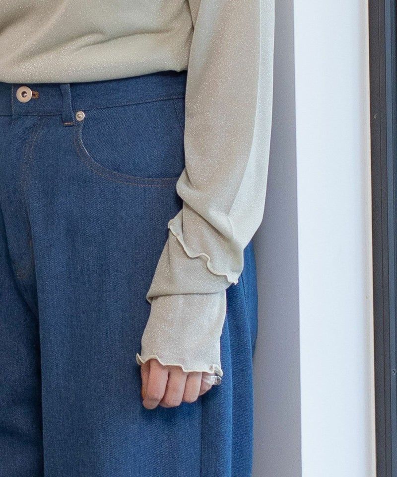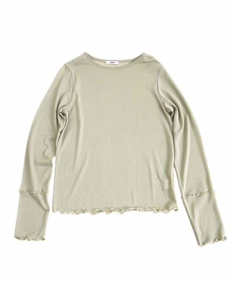 柔らかく伸びの良いラメトップス。程よくデイリーなコーディネートになじむラメ感です。ニットやスウェットと重ねて長めの袖をくしゅっとさせるレイヤードコーデがおすすめです。