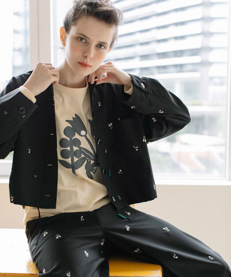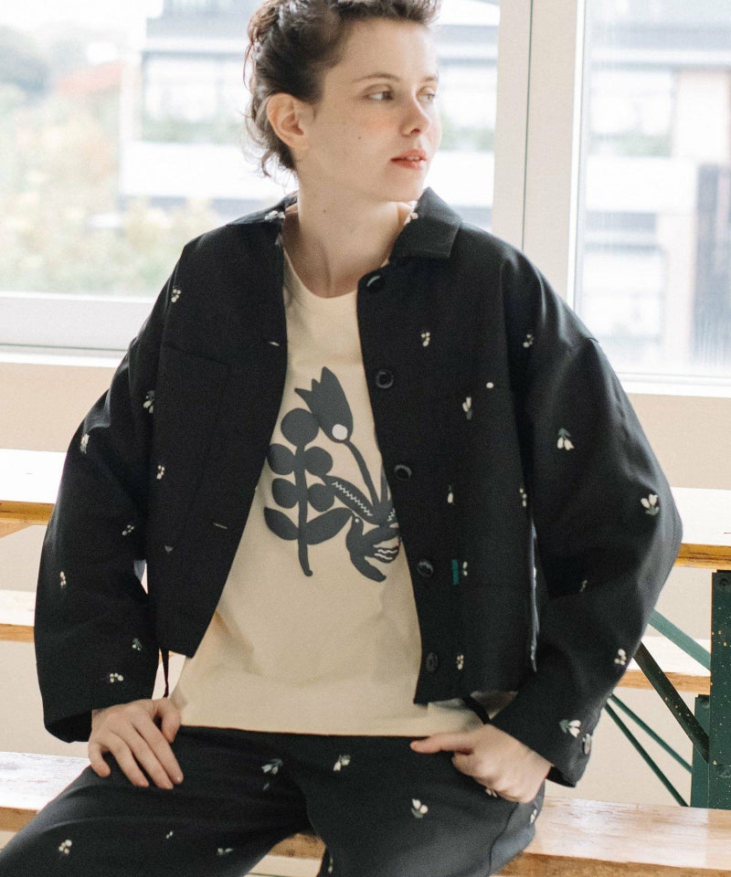 ボタニカルモチーフをプリントしたトップス。ぷっくりと立体感のある発泡プリントが目を惹きます。ゆるっと着られるオーバーサイズシルエットで一枚でもこなれた雰囲気に。ジャンパースカートのインナーとしてはもちろん、パンツやスカートと合わせるボトムスを選びません。