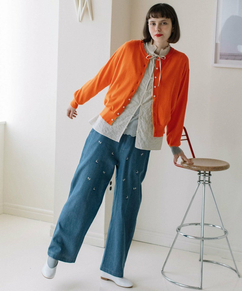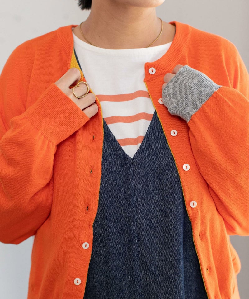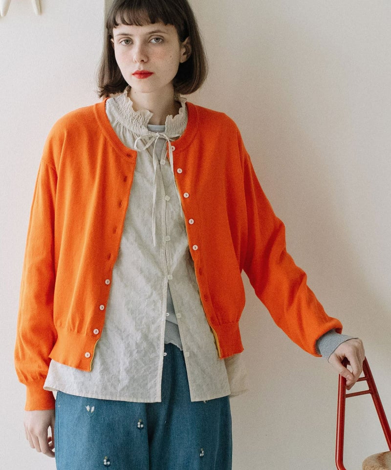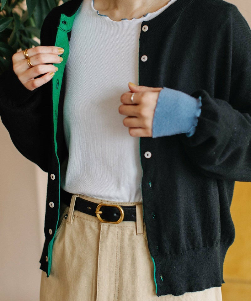目の詰まったきれいなハイゲージカーディガン。フロントはあえて上下半分ずつ配置したボタンとボタンホールで、でこぼこな前立てを表現。左袖は配色にして、遊び心の詰まったほんのりモードなデザインです。さっと羽織りやすいゆとりのあるサイズ感で、カジュアルシーンからオフィスカジュアルにも◎デイリー使いにおすすめの1枚です。