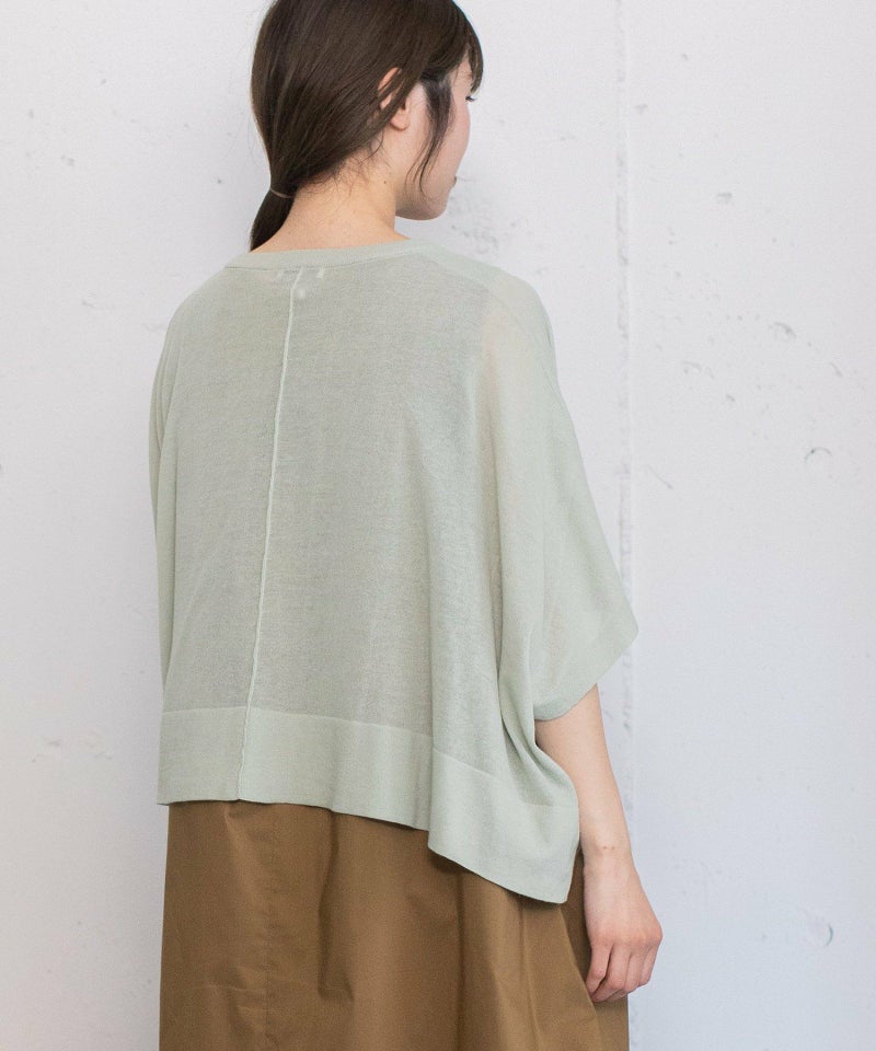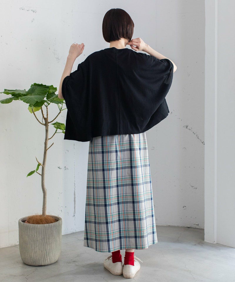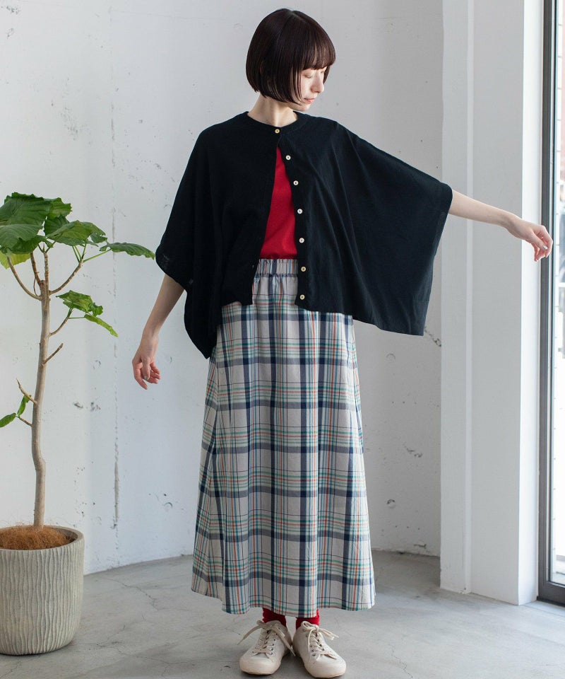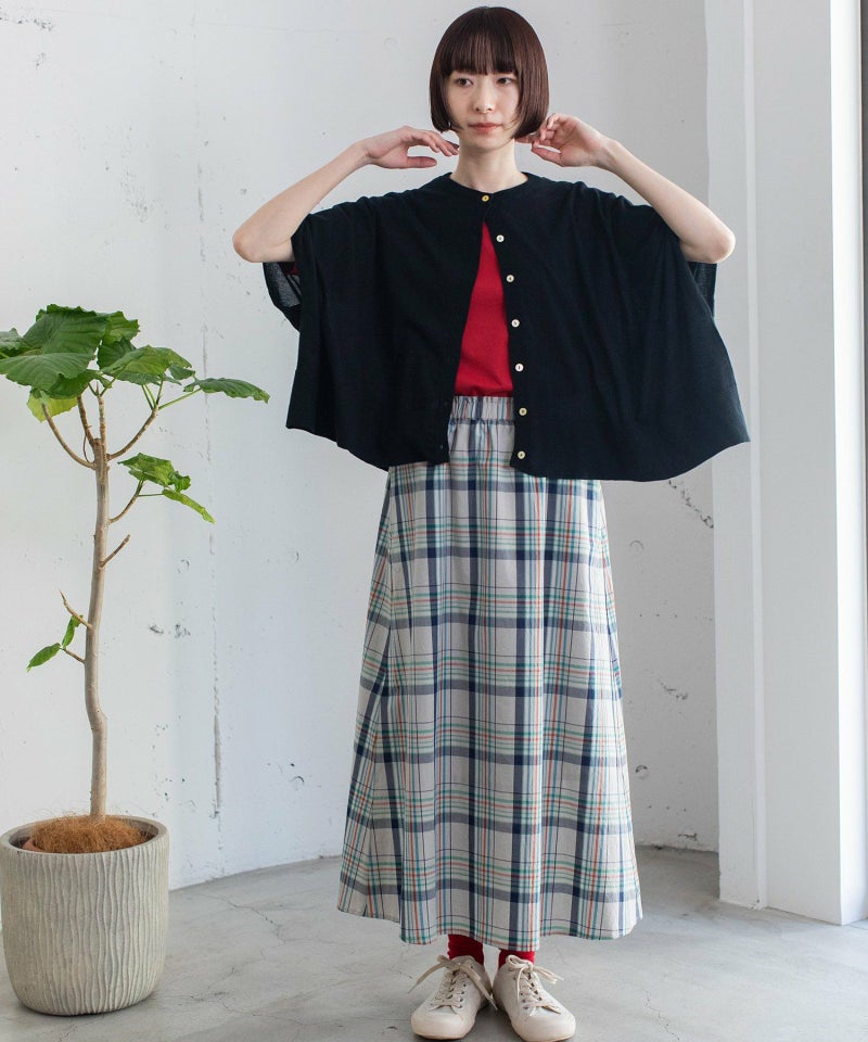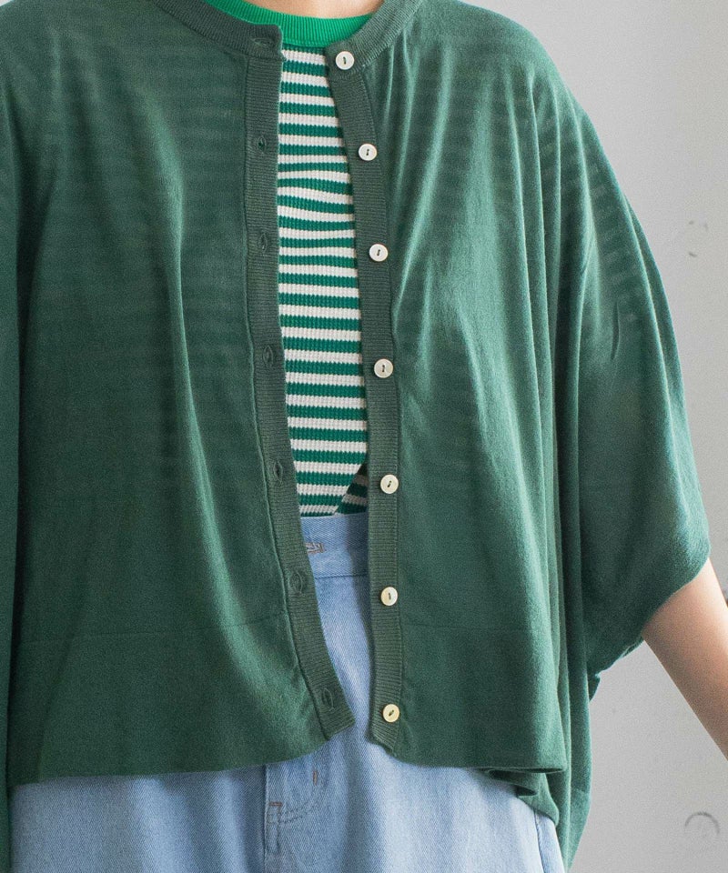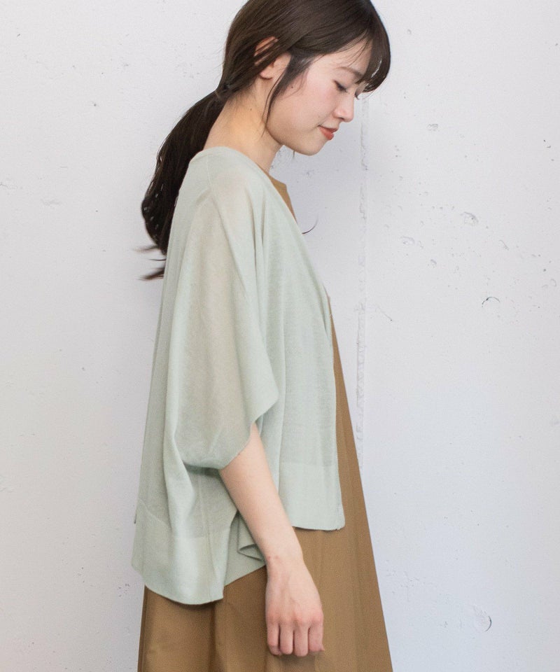 ケープのようなデザインカーディガン。抜け感のある短めの着丈に、たっぷりとしたリラックス感のあるシルエット。サイドの開きが気にならないよう袖下は綴じた仕様にしています。ボタンを留めてプルオーバーとしての着用もおすすめです。清涼感のある、軽くさらっとしたタッチのコットンで、シーズンの変わり目や冷房対策にもご活用いただけるアイテムです。