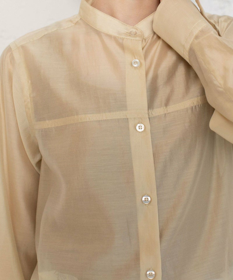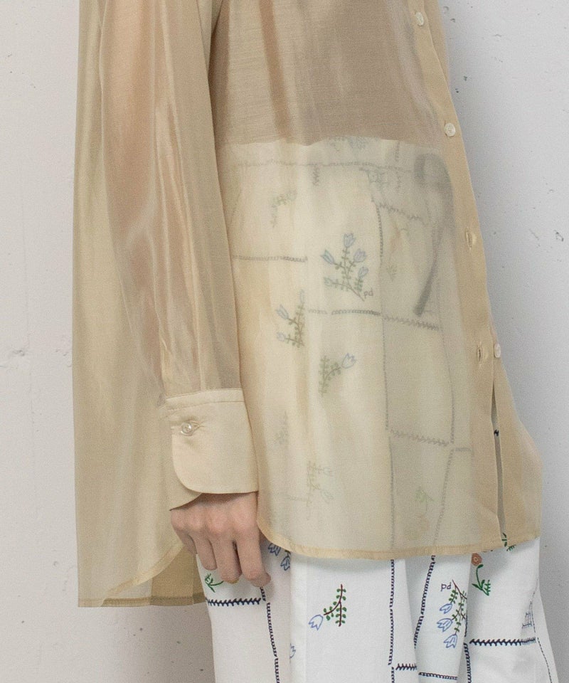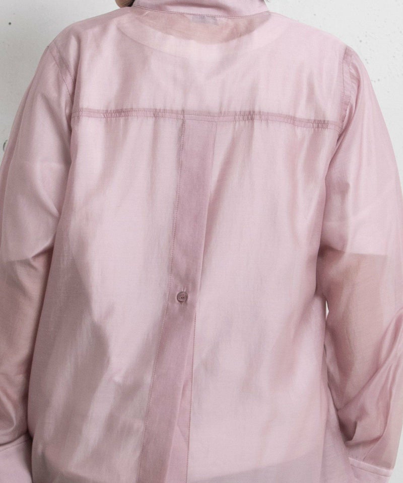 春から夏まで、あると便利なシアーシャツ。さらりと羽織るだけで一気にトレンド感のあるスタイルになります。袖口をまくって羽織ればこなれた印象に。フロントはシンプルに、バックスタイルは1つボタンのスリット仕様で、着こなしのアレンジが広がるデザイン。前後差のあるヘムラインが軽やかな雰囲気に仕上がりました。