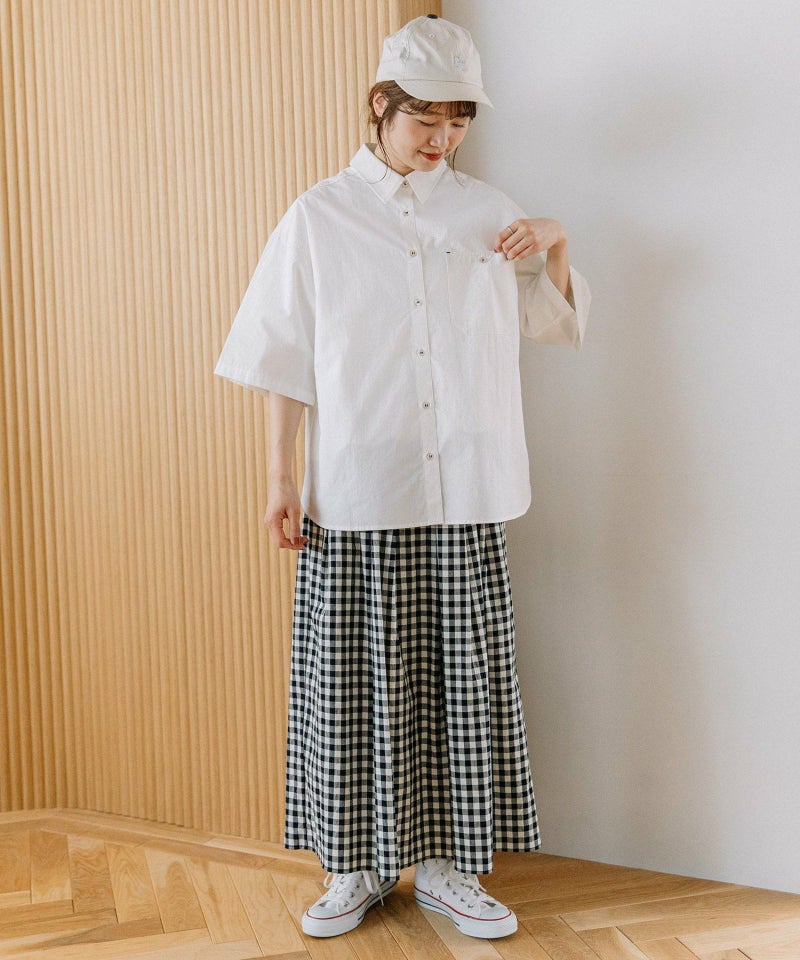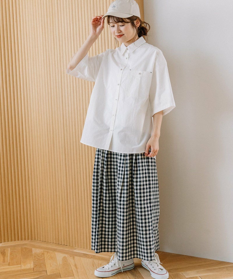 同素材の2511146985 ギンガムチェック6分袖シャツとのセットアップもおすすめです。
