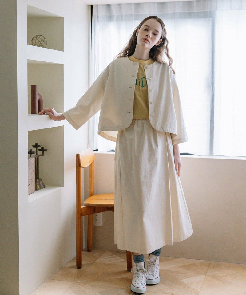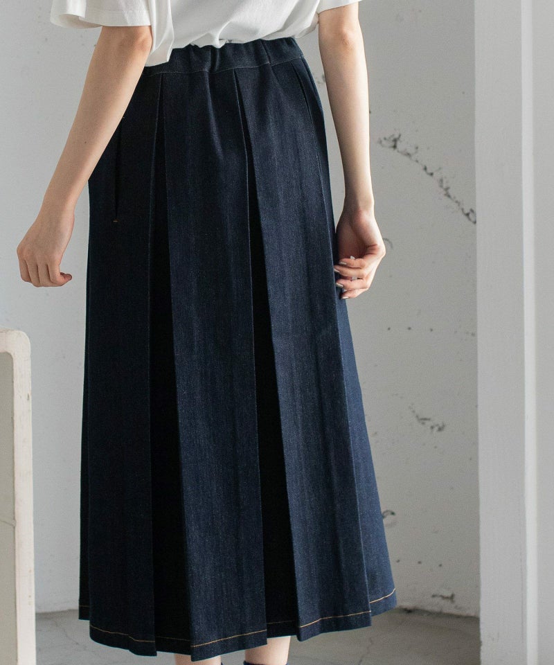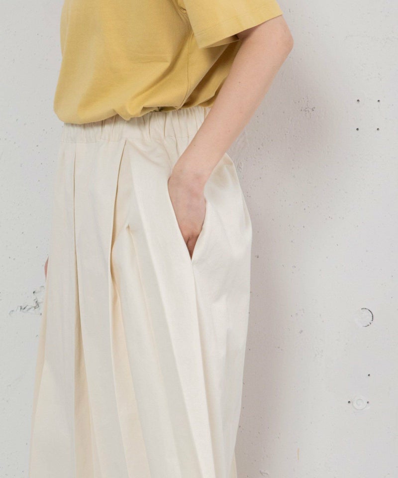 気分に合わせてデザインを使い分けて着られる2wayスカート。前後を入れ替えて、巻きスカート風デザイン・ボックスタックデザインの2通りで履けるスカートです。コットンツイルのキナリ・ブラックとライトオンスデニムのインディゴの3色展開。ウエストゴム仕様で楽な着心地です。両サイドポケットつき。