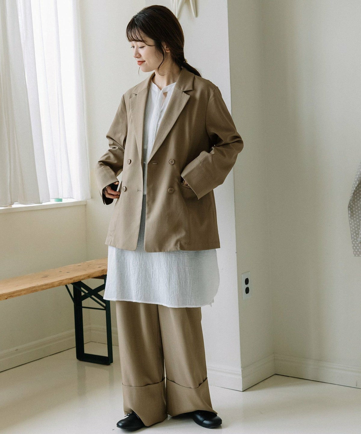 動画 <LIMITED PRICE>ロールアップデザインワイドパンツ ¥ 7,590 ¥ 4,554 税込 販売期間 2026/02/27 0:00 〜 2026/03/09 10:00 カートに入れる