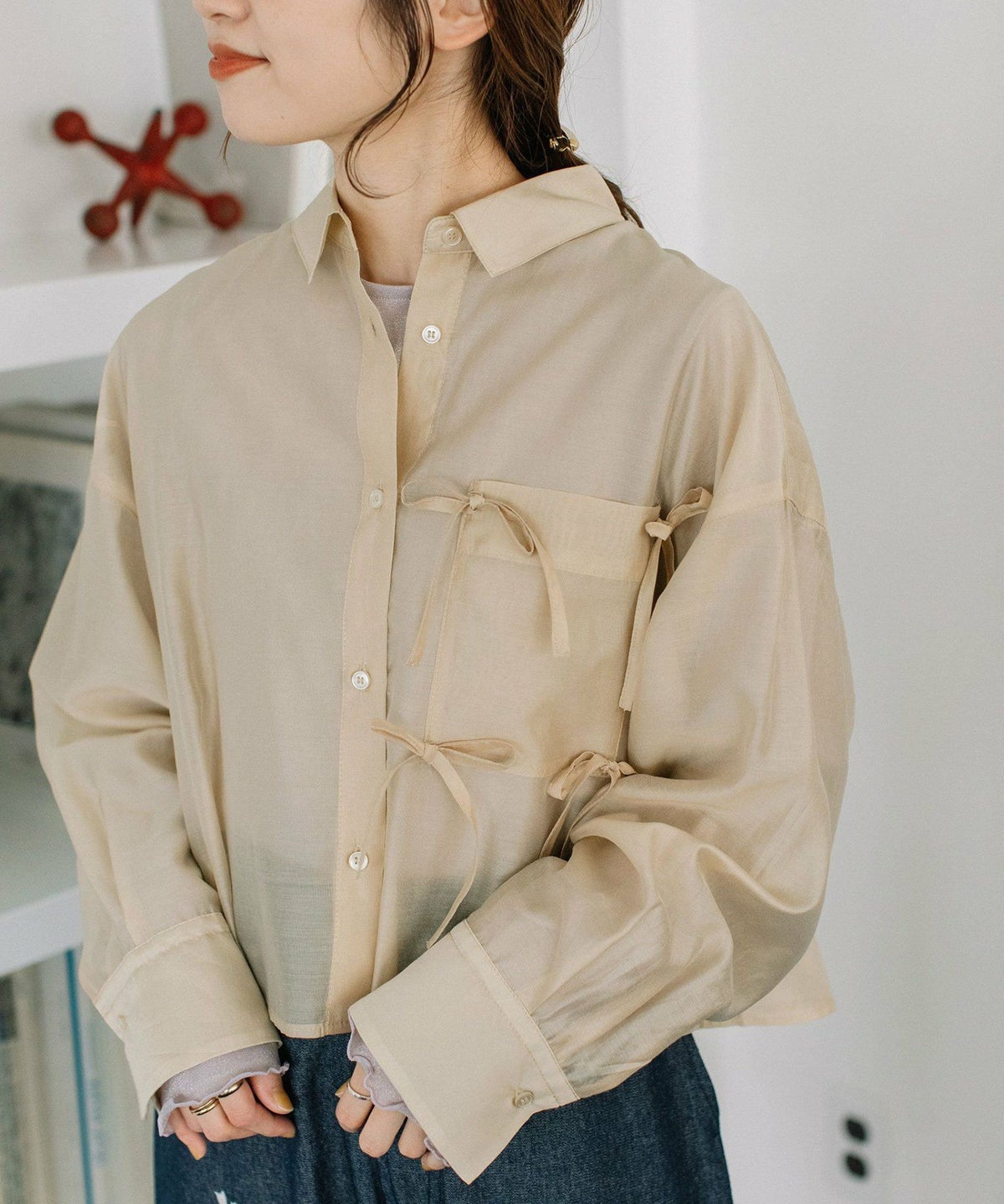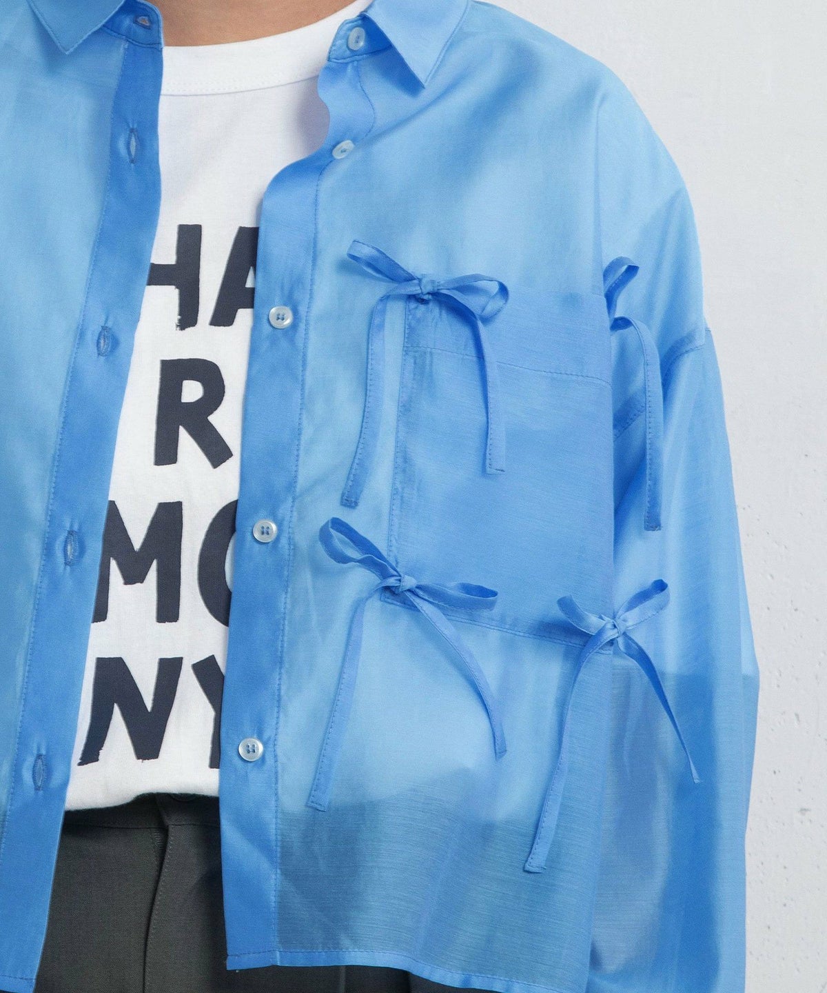<LIMITED PRICE>シアークロップドmany manyリボンシャツ ¥ 6,490 ¥ 3,894 税込 販売期間 2026/02/27 0:00 〜 2026/03/09 10:00 カートに入れる