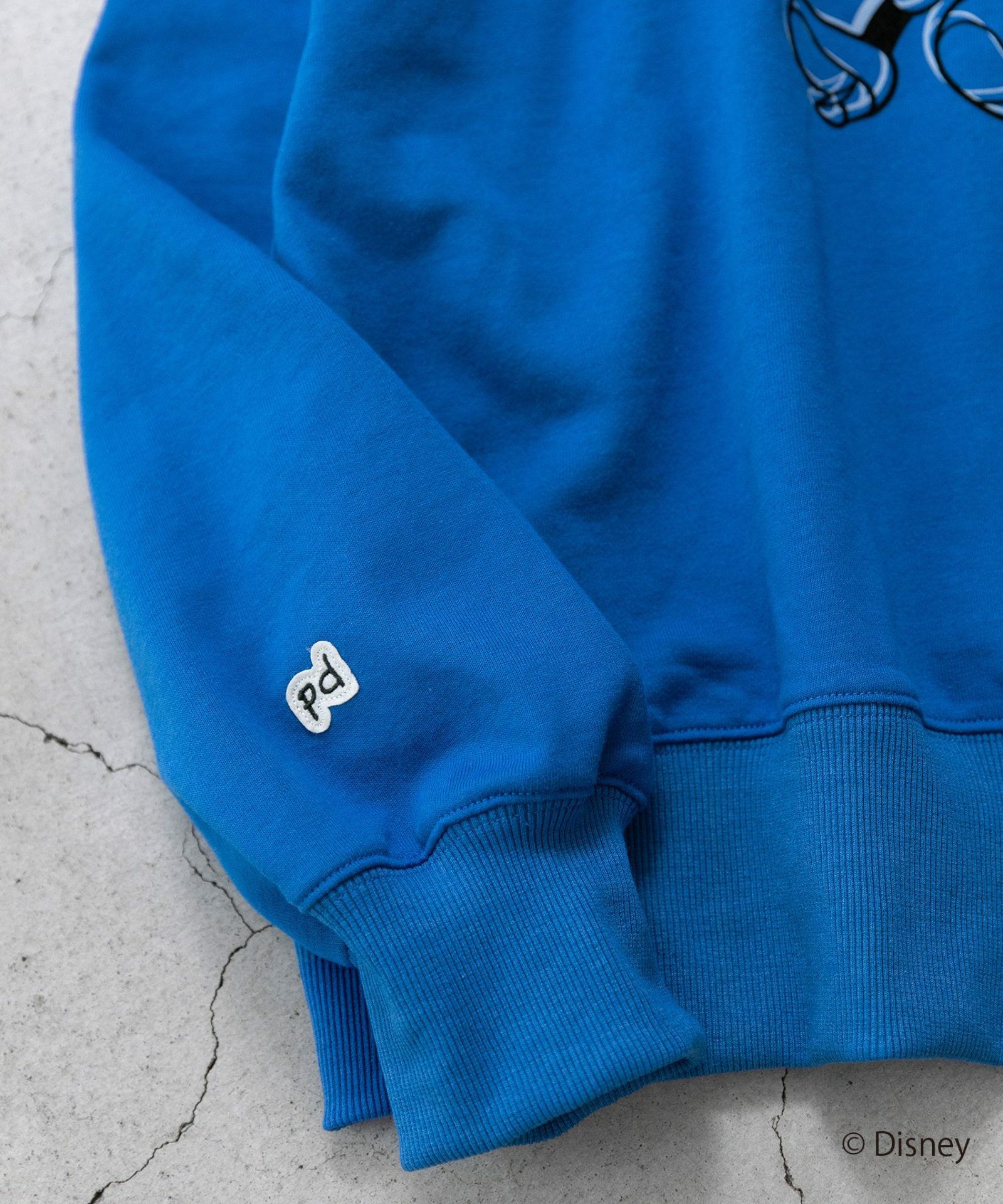 ・右袖にはpd(POU DOU DOU)のアップリケ、左袖にはキャラクターネームの刺繍を施し、さりげないアクセントもポイント